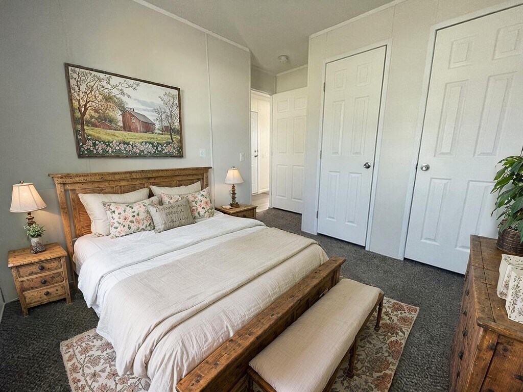 Autumn has arrived, and so has your chance to save big. Apply and get approved by October 31, and you will receive three months of site rent waived after closing! This limited time fall offer makes now the perfect moment to settle into a beautiful new home before the season slips away. Step inside this delightful two bedroom, two bathroom home where comfort meets modern style. The open layout creates a welcoming flow from the living area to the kitchen, featuring a spacious island with seating, perfect for sharing homemade treats or sipping hot chocolate. The kitchen comes equipped with a dishwasher and microwave, making daily living easy and enjoyable. Just off the dining area, you will find a separate laundry space that keeps chores neatly tucked away. The primary bedroom offers a large walk in closet and an ensuite bathroom with double sinks and built in shelving beside the shower, perfect for keeping all your essentials organized. The secondary bedroom is conveniently located near the second full bathroom, offering comfort and privacy for guests or family. From the glow of fall sunsets through the windows to cozy gatherings around the kitchen island, this home captures the feeling of autumn comfort and convenience. Apply today to take advantage of our October Special and make this lovely home yours before the offer and the month comes to an end!