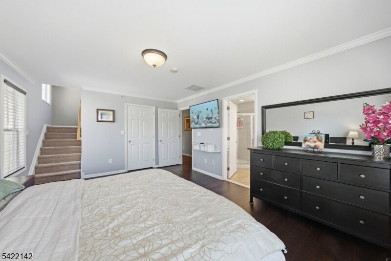 Are you looking for LARGE, space and PRIVACY, this SPACIOUS, end -unit Townhome in a GATED community of Cambridge Crossing, features 2,196 sq ft of refined living space with Central AC and HEAT. The Townhome offers 2 MASTER Bedrooms with CUSTOM walk In CLOSETS + privately situated on a 3rd FLOOR expansive LOFT used as 3rd BEDROOM + an OFFICE or FAMILY suite, Bright & airy HUGE Living room w/ many windows & gas FIREPLACE opens to a DECK . Dining room is with additional seatings at a kitchen peninsula for entertaining. Kitchen with many storage cabinets & beautiful granite counters. Amusing HARDWOOD floors throughout with a carpet in a loft for a cozy feel. custom walk-in closets & and 2 MASTER BATHs with Jacuzzi tub & a stall shower. WASHER & DRIER in unit and the laundry room is HUGE for extra storage. Ground level has FINISHED oversized garage with MUD room & coat closet, UNUSUAL in this community -driveway for 2 cars + Garage space. ( YES, you can park 3 cars) The community has beautiful POOL, Club House with lounging area and a GYM with SAUNA. Clifton Train Station and NYC bus are less than one mile away! ACCESS to many ROADS RT 46 & GSP around the corner. RT 3 a mile away, 8 mi to MONTCLAIR its boutique restaurants, Wellmont Theatre, Yogas, Whole Foods Special