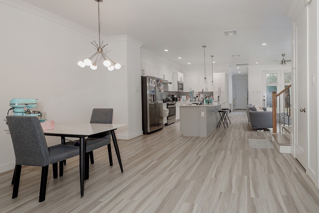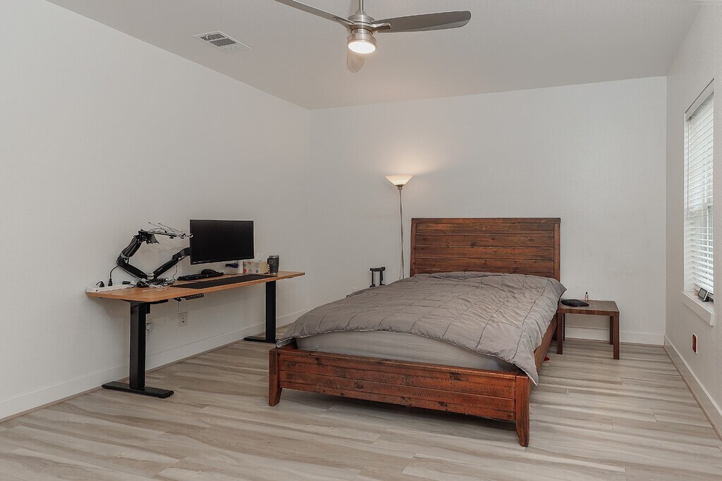Move in ready townhome for lease in Creekside with stunning curb appeal! The covered front porch leads you inside,where you'll find a neutral paint palette,abundant windows with 2" blinds,crown moulding,designer light fixtures,light wood floors and an open concept. The study with French doors is a great work from home space,but could be used as a playroom for kids! The island kitchen with quartz counters,a breakfast bar,stainless steel appliances and gas cooking overlooks the breakfast and family rooms. Formal dining (or flex space). All three bedrooms and game room up. Close to Creekside Village Shopping Center,easy access to Grand Pkwy for that commute,and all Creekside amenities,including the George Mitchell Nature Preserve for hiking,the Rob Fleming Aquatic Center with lazy river,stocked lakes for fishing,tennis courts,parks,and more! Equal deposit. Current credit report with scores required. MLS# 95792588