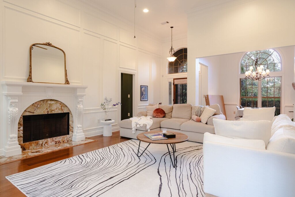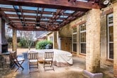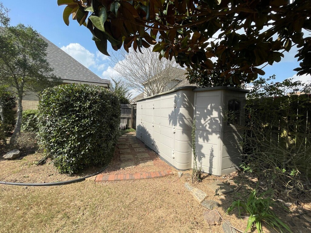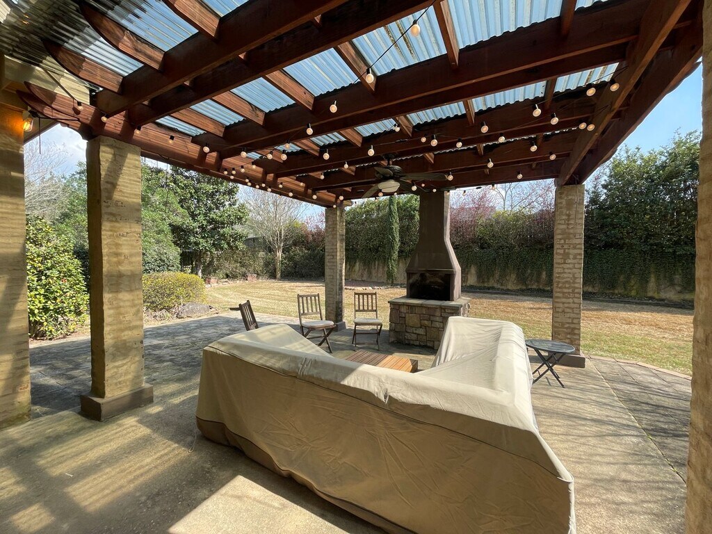 Beautiful home in popular subdivision. Bright open floor plan with large open windows in the dining, living and kitchen provides lots of natural light while privacy is maintained with the property sitting atop a hill. Mail level consists of a formal dining room, living room with modern mantle and decorative moulding panels, Kitchen with stainless appliances, granite counters and a breakfast nook, Primary bedroom with ensuite bath including jetted soaking tub, separate shower and walk in closet and 2 guest bedrooms with shared bath. Stairs lead to 4th bedroom and additional full bath. Spacious backyard feels like a private garden complete with covered patio and lights, outdoor fireplace and tons of lush plants and trees.