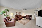 Features include tile floors,updated kitchen,walk-in closet,newer A/C and appliances,screened patio w/storage. Located in desirable Upminster G Garden apartment with new roof,gutter system and building patio and barbecue area. Renting Furnished. Move Right In! Enjoy resort-style amenities: Luxurious Clubhouse includes a1600-seat theater,meeting rooms,library,billiards,stained glass workshop,indoor pool,banquet hall and fitness center. Outside includes pools,sundeck,restaurant,putting green,tennis,pickleball,shuffleboard,horseshoes,BBQs and more. Plus,satellite pools,24-hr gated security,courtesy buses,clubs and classes. Close to beaches,parks,dining and shopping! MLS ID B26006742