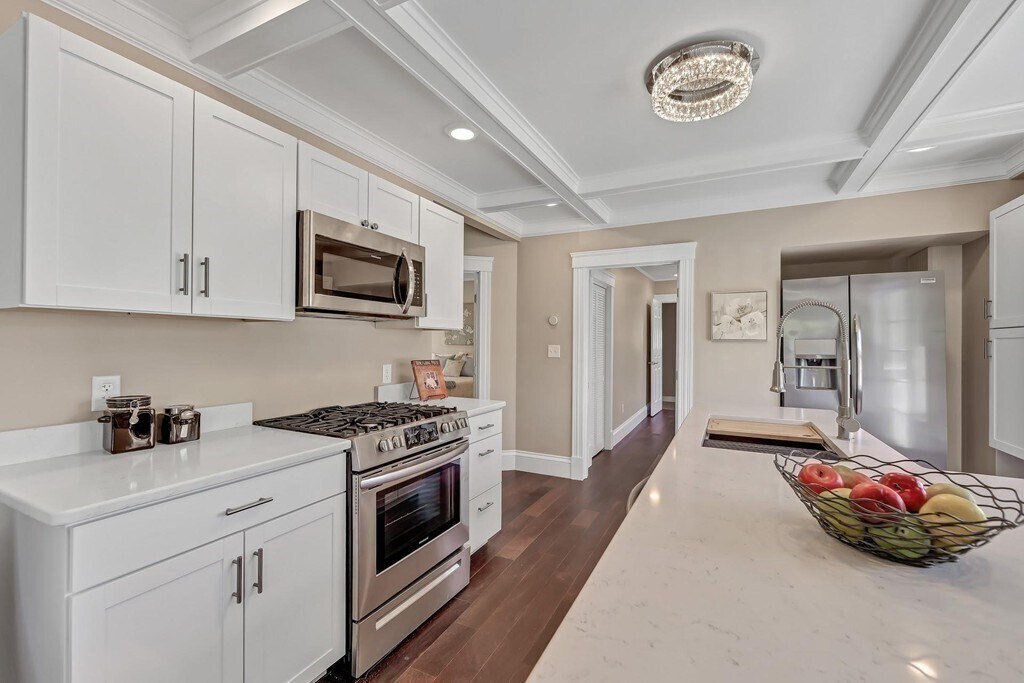 Recently updated 3 bed 2 bathroom apartment with a spacious living area and hardwood floors throughout! The kitchen offers all that a home chef would want including Stainless steel appliances quartz countertops and plenty of counter space. In unit laundry and a deck! 2 off-street parking spots included in rent! Near all that W. Medford has to offer and stilling very close to Arlington as well. Upfront cost first and last months rent. MLS# 73437335