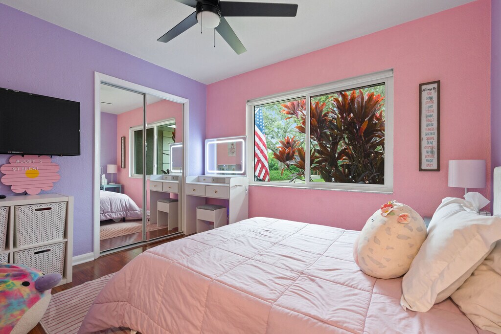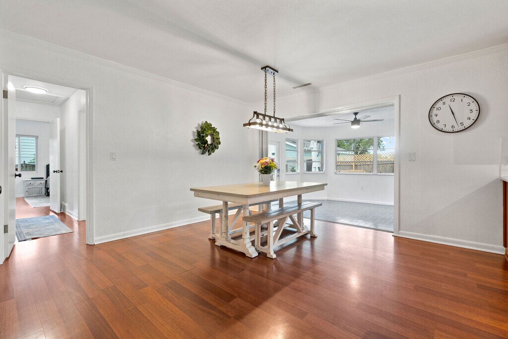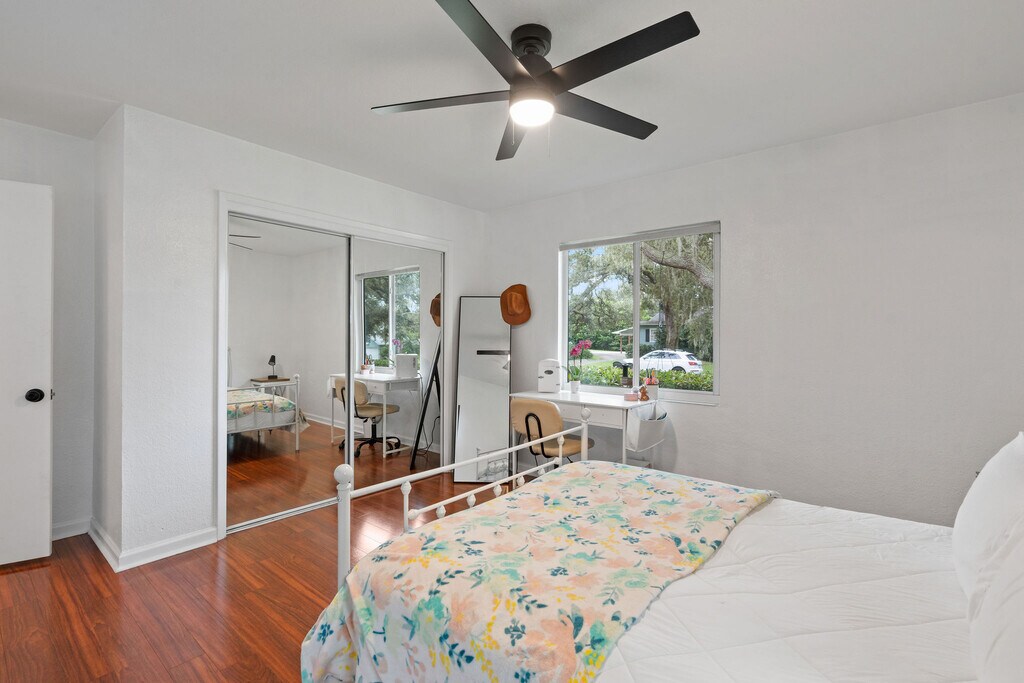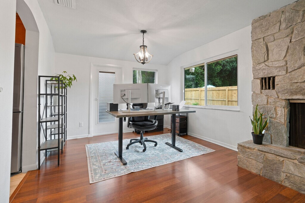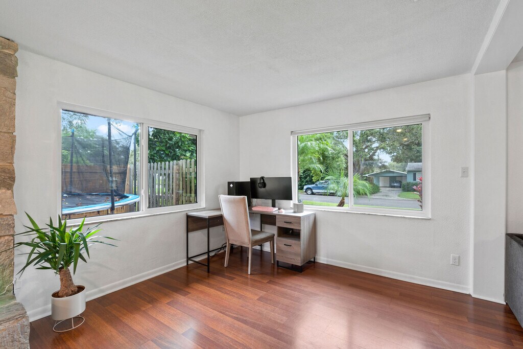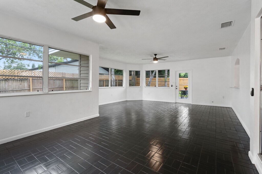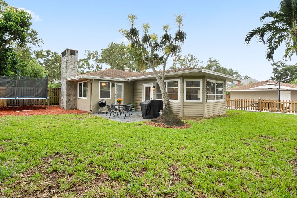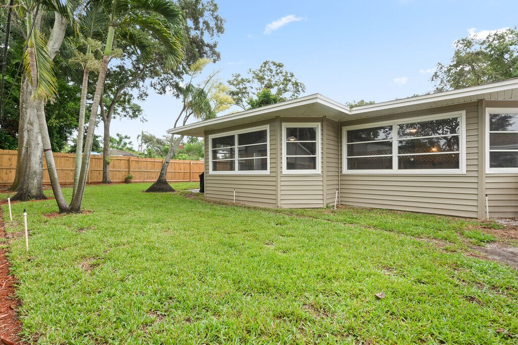 Rent this beautiful Midcentury Modern home is located on a double lot in one of the most desirable neighborhoods in Clearwater - Glenwood Estates. This is 5 minutes from downtown Clearwater and about 10 minutes to Clearwater Beach. It has 3 bedrooms and 2 bathrooms and is available on a 1-year lease.. This home is 2112 square feet plus an oversized 2-car garage that is air conditioned and currently being used as a private gym and office but still fits two cars. There is a whole-home water filter and a RO (reverse osmosis) water filtration system in the kitchen. The spacious home has generously large living areas with beautiful wooden floors in most rooms. In addition to the main large living areas, there is an enormous space in the back with a view from the kitchen, which makes a perfect playroom but also an office or a chilled TV area. This home is located on a 0.28 acres lot, 117 ftx108 ft per public records, a double lot. Then the oversized very deep driveway that goes to the 23x23 ft detached garage. The home will be available for move-in on 1st December but if you would like to move in sooner, that can be arranged. The home comes unfurnished, unles you would like it furnished. The landlord is flexible.