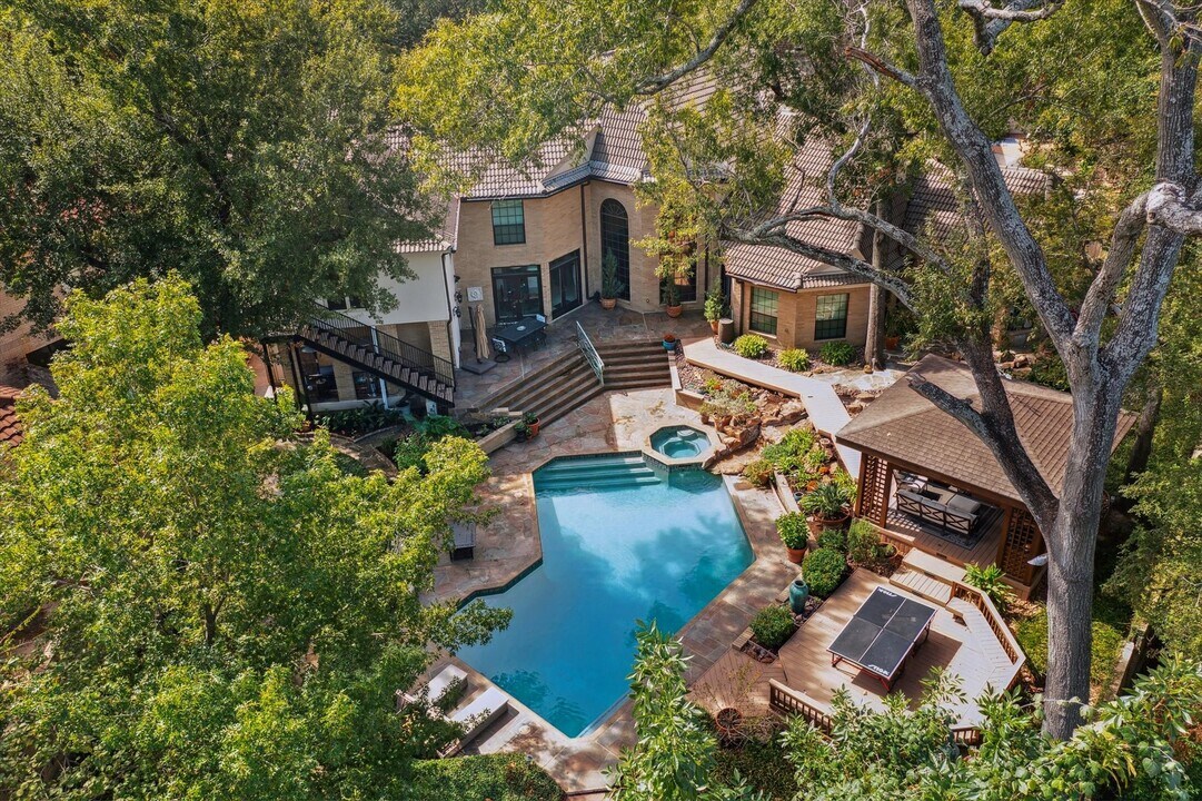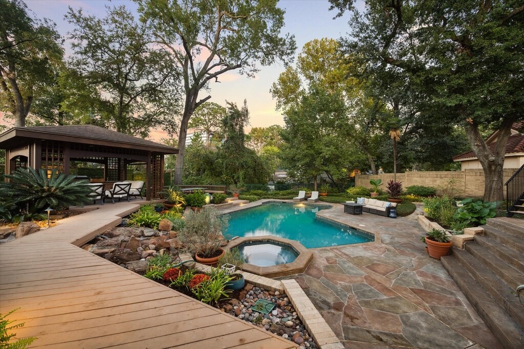 Discover a home of unparalleled elegance and refined craftsmanship in one of West Memorial’s most sought-after neighborhoods. This newly remodeled residence is designed for luxurious living and entertaining,with every detail meticulously curated. Step into a private backyard retreat,complete with a heated pool and spa,gazebo with an outdoor kitchen,and serene river rock brook with a waterfall—perfect for gatherings or relaxing in nature-inspired tranquility. Inside,the unique round den with custom millwork and wet bar sets the tone for refined leisure,accompanied by a game room with its own wet bar,a European-inspired kitchen with sleek cabinetry,and large walk-in closets with built-ins throughout. Every bathroom has been exquisitely remodeled.Energy-efficient tankless water heaters and a durable tile roof. Situated in the intimate Memorial Thicket,enjoy the added benefit of a manned security gate,scenic walking trails,and easy access to major thoroughfares. MLS# 22142931