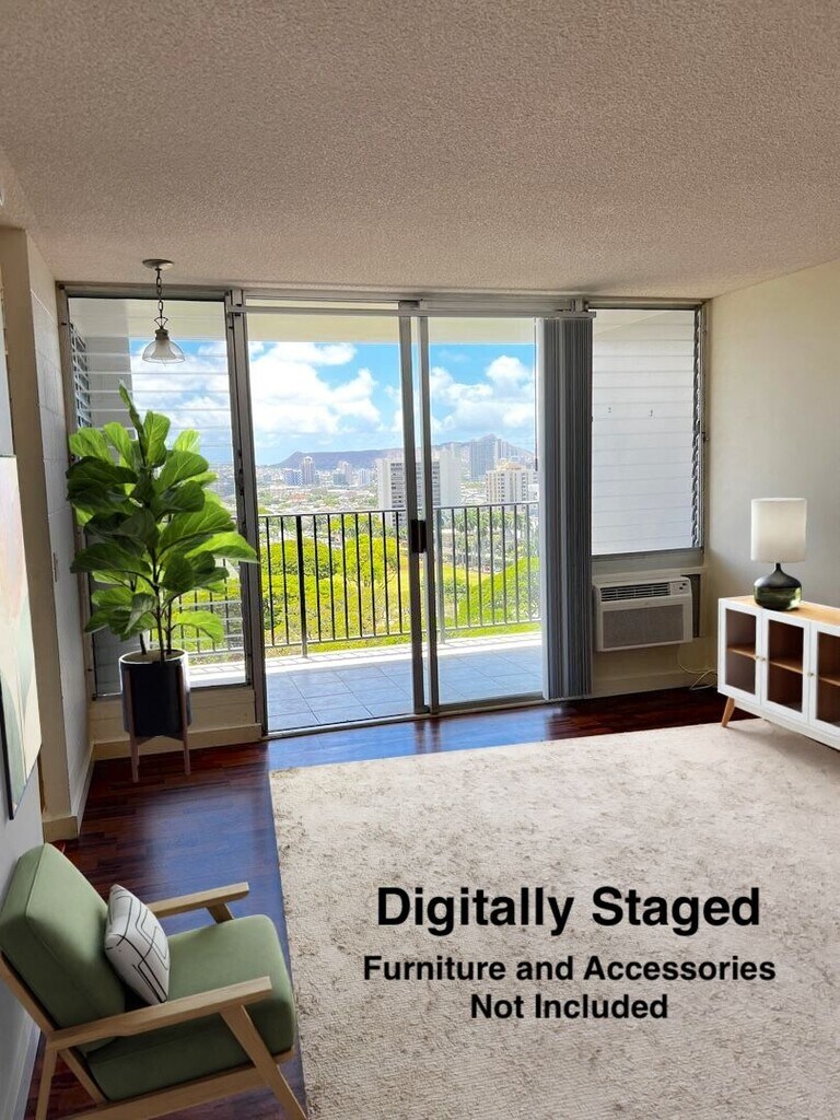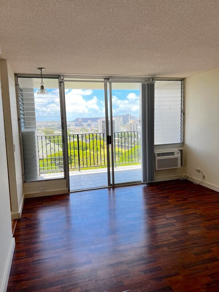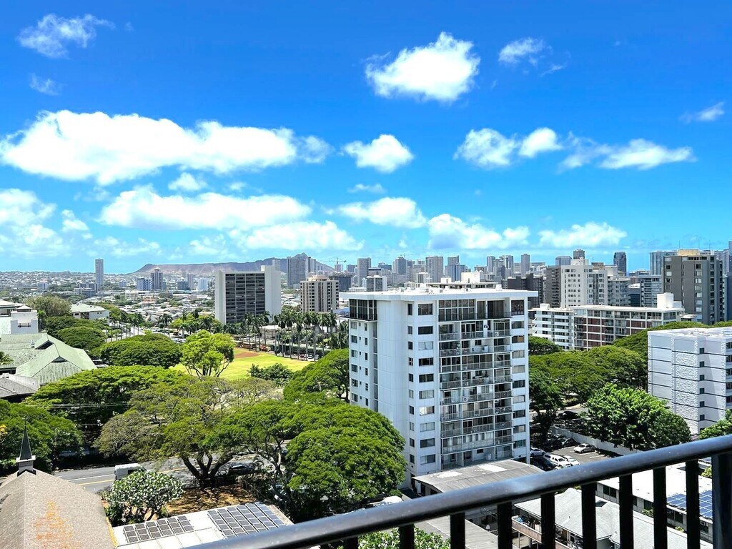 Located in Makiki on Poki and Dominis Streets, Punahou Royale is 1-2 miles from the University of Hawaii and several public and public schools. This freshly painted 1-bedroom, 1-bathroom 17th-floor unit provides a breezy environment, as well as a covered lanai with views of Diamond Head, the Makiki area, and a peek of the ocean in the distance. Features: • One assigned parking stall in the secure building. • Window AC unit. • Wood flooring, a sparkling tub/shower, a bedroom and an extra linen closet. • Galley-style kitchen has ample cabinet space, full-size fridge, range/oven, microwave, and disposal. • Unit is approximately 567 square feet, and the lanai is approximately 63 sq. ft. • Water & sewer are included with the rent. • The laundry room has coin-operated machines Requirements: • No smoking • No pets • Renters insurance required • Min. FICO credit score of 675 • Min. income equivalent to 2.5 times the monthly rent. Application fee is $22. To schedule a showing, please contact: Sheila Kawakami (R) | License #RB-19847 | KAWAKAMI PROPERTY MANAGEMENT, INC.