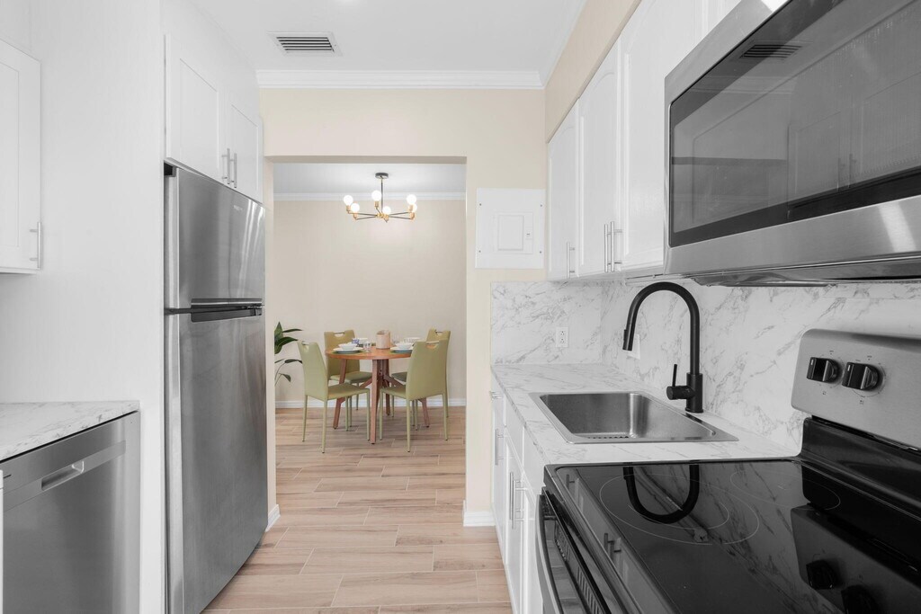 Brand New, fully renovated 1-bedroom, 1-bath home just 2 miles from Fort Lauderdale Beach, Las Olas, and downtown. This move-in ready home features a brand-new roof, impact windows, private entrance, fenced paver yard with large private alley, and two dedicated parking spaces plus additional parking. Inside, enjoy brand new tile plank flooring, a completely updated kitchen with brand new counters, backsplash, cabinetry, plumbing fixtures, garbage disposal, and stainless appliances including dishwasher, as well as a fully remodeled bathroom, large walk-in closet, and brand new in-unit laundry. The home can also be rented fully furnished with two smart TVs and all utilities included. This property offers the perfect combination of contemporary upgrades and convenient Fort Lauderdale living.