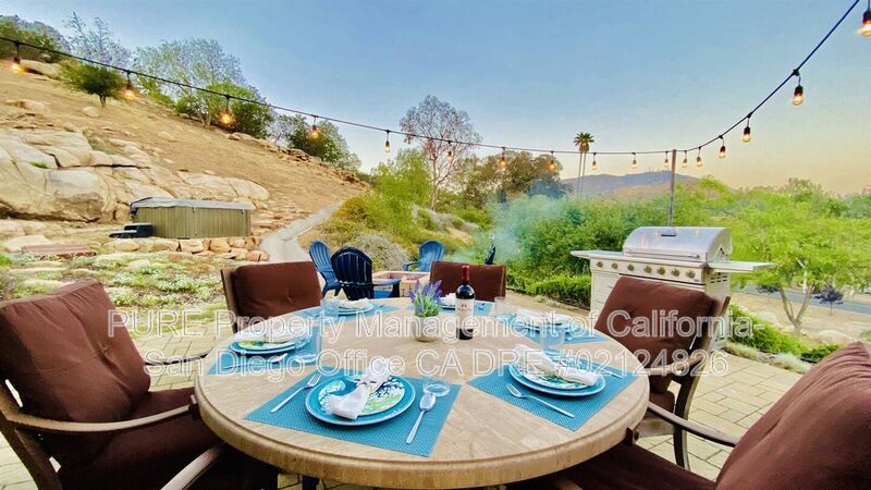 This spacious 4 bedroom, 4.5 bathroom home offers approximately 3,126 square feet of comfortable living space in a peaceful Poway setting. The open floor plan features a bright living area with fireplace, a well-appointed kitchen with granite countertops and stainless steel appliances, and a dining area with beautiful mountain views. Two bedrooms, including the primary suite, are located on the main level, with two additional bedrooms and a loft upstairs providing flexible living space. The home also includes central air conditioning, a washer and dryer, a gas water heater, and an attached three-car garage with additional driveway parking. The expansive property offers scenic surroundings, outdoor living space, and access to nearby hiking and biking trails. Conveniently located near Interstate 15 and Highway 67, the home is just minutes from shopping, dining, golf, and popular outdoor destinations including Iron Mountain, Mount Woodson, and the San Diego Zoo Safari Park. The property includes: refrigerator, stove/oven, microwave, dishwasher, washer, dryer, gas water heater Staging furniture is not included and will be removed prior to move-in. Owner is leaving the pool table, foosball table, and mounted TV; tenant is responsible for any damage to the pool table. The owner does not maintain the foosball table or mounted TV. Hot tub is available for tenant use but must be serviced and maintained by the tenant. Owner provides monthly tree trimming across the property; tenant is responsible for all other landscaping. Water softener requires Wi-Fi and will be serviced by the owner’s preferred vendor. ANIMALS *PETS ARE NOT ACCEPTED *Inapplicable to assistance animals RESIDENT BENEFITS PACKAGE For REDUCED move-in costs, talk to us about our Security Deposit Waiver Program! Enjoy the benefits of the Resident Benefits Package (RBP), tailored to your needs. Choose from our tiered pricing options, starting at just $25.99*/month. Your RBP may include liability insurance, HVAC air filter delivery for applicable properties, on-demand pest control, and more. SECURITY DEPOSIT INFORMATION Pay the traditional security deposit amount, or reduce your move-in costs with our Security Deposit Replacement Program. Eligible applicants can replace the traditional deposit with an affordable monthly fee. While you remain responsible for any damages, this program offers substantial upfront savings at move-in! AMENITIES AND SERVICES INCLUDED Moving in just got easier! Enjoy PURE Utility Concierge services at no extra cost, making your transition smooth and simple. ADDITIONAL DISCLOSURES All information provided is deemed reliable and accurate but not guaranteed. Prospective residents are responsible for verifying all property details and conditions to their satisfaction prior to submitting an application. Please be aware that we do not advertise on Craigslist. We do not accept applications from any 3rd party service including Zillow. Visit our website for more information and to apply. Amenities: living room, gas fireplace, covered patio, formal dining, loft, central ac, walk in closet, spa/hot tub, sprinkler system