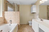 Cozy one-story home with tile in the entry, kitchen, and bathrooms. Spacious eat-in kitchen with island and flat cooktop stove. Primary bedroom includes a jetted tub. The fourth bedroom can be used as an office or study.