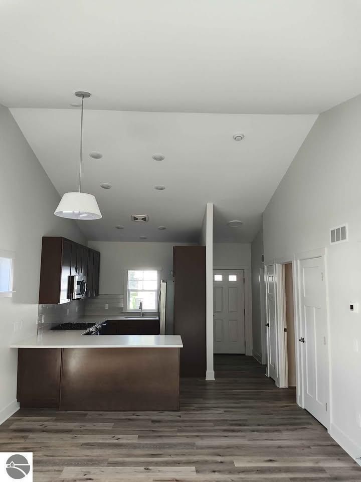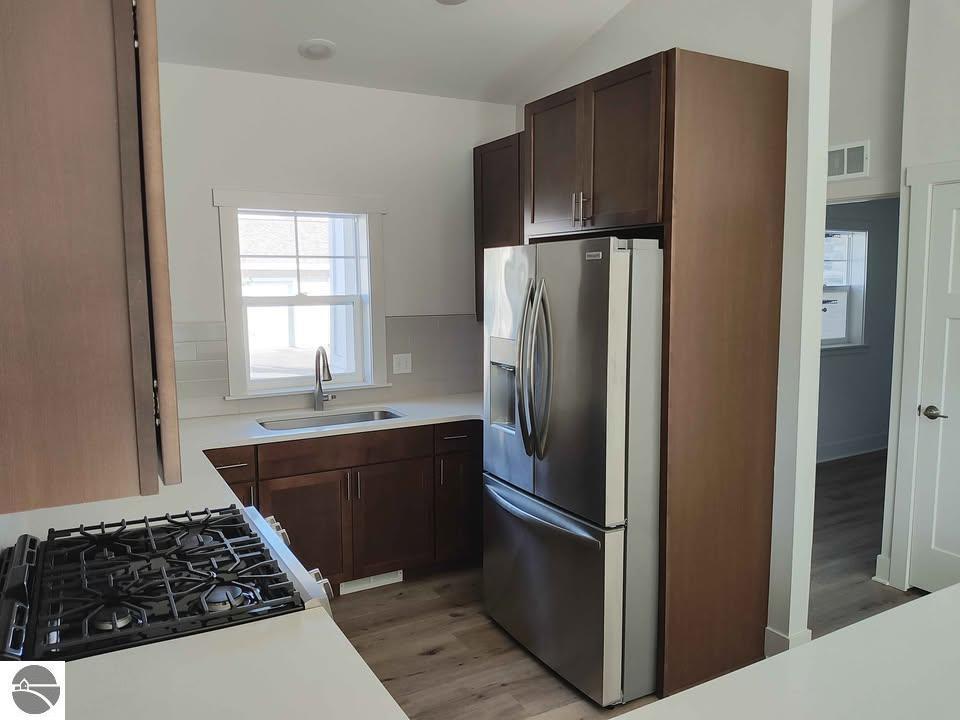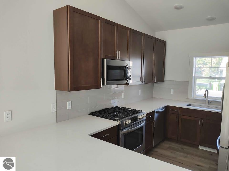 1542 UNIT 1. NEW 1 BR/1 BA 806 S.F. condo w/front porch, full/unfinished basement and 1-car detached garage. Main level living room and bedroom w/cathedral ceiling, extra large slider to back patio, full bath and spacious laundry/mudroom. Kitchen features breakfast bar, 42 cabinets w/soft close hardware, subway tile backsplash, Quartz countertops and stainless steel appliances. Luxury Vinyl Plank (LVP) flooring throughout except for bedroom carpet. Exterior and interior maintenance included. Access to Clubhouse, pool, exercise room and 470 ft. shared frontage on Boardman Lake. Convenient location close to the TART Trail and just 2 miles to downtown TC! (If bigger unit is required, there are other units available...2 bedroom for $2,150/mo. and 3 bedroom for $2,650/mo.) Two pets allowed!"