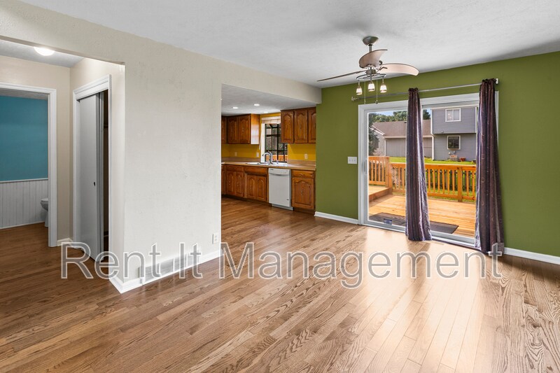 Come check out this townhouse/villa! Enter main floor living room with high cathedral ceilings, beautiful hardwood floors, and cozy fireplace and half bath. Eat in kitchen area opens to back deck and fenced yard. Second floor features 2 spacious bedrooms and a full bathroom. Finished basement features second living room and 3rd bedroom with walk in closet and 3/4 bathroom. Pets ok but no more than 2 pets and no cats $25/pet/month plus one time non refundable pet fee of $250 per pet. No Section 8. Close to shopping and the interstate. Schedule showing today!