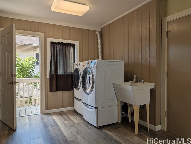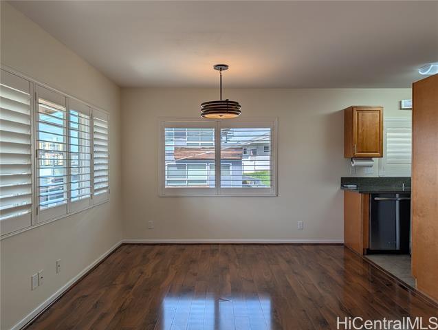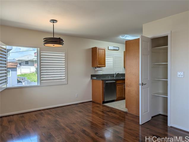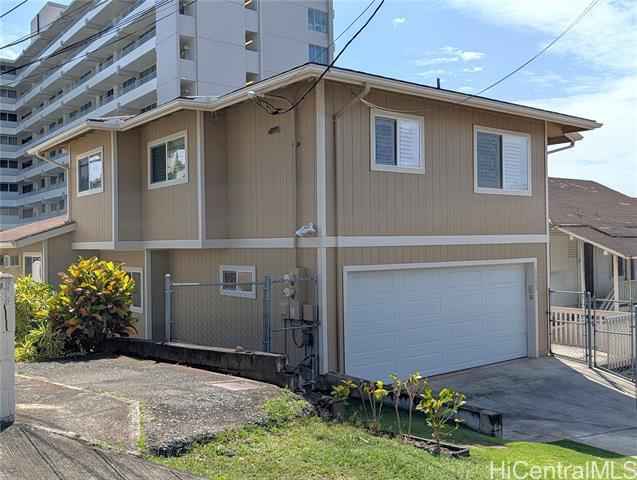 Clean, upgraded, and very walkable 2/1 located on Pele Street, above Downtown Honolulu. This home has an enclosed 2-car garage and was built in 2014. It features all appliances, including refrigerator, dishwasher, range, microwave hood, 4 split AC units, ceiling fan, front load washer/dryer, Hunter PVC shutters, and solar water heater. There is also a large, enclosed laundry room in the rear of the garage, with AC, that can be used as a hobby room too. Attached duplex in rear faces the opposite direction, has their own carport, separate laundry, and utilities. Tenants pay for electricity and water/sewer, and yard service is included. No smoking, and renters insurance is required. Owner holds an active Hawaii real estate license.