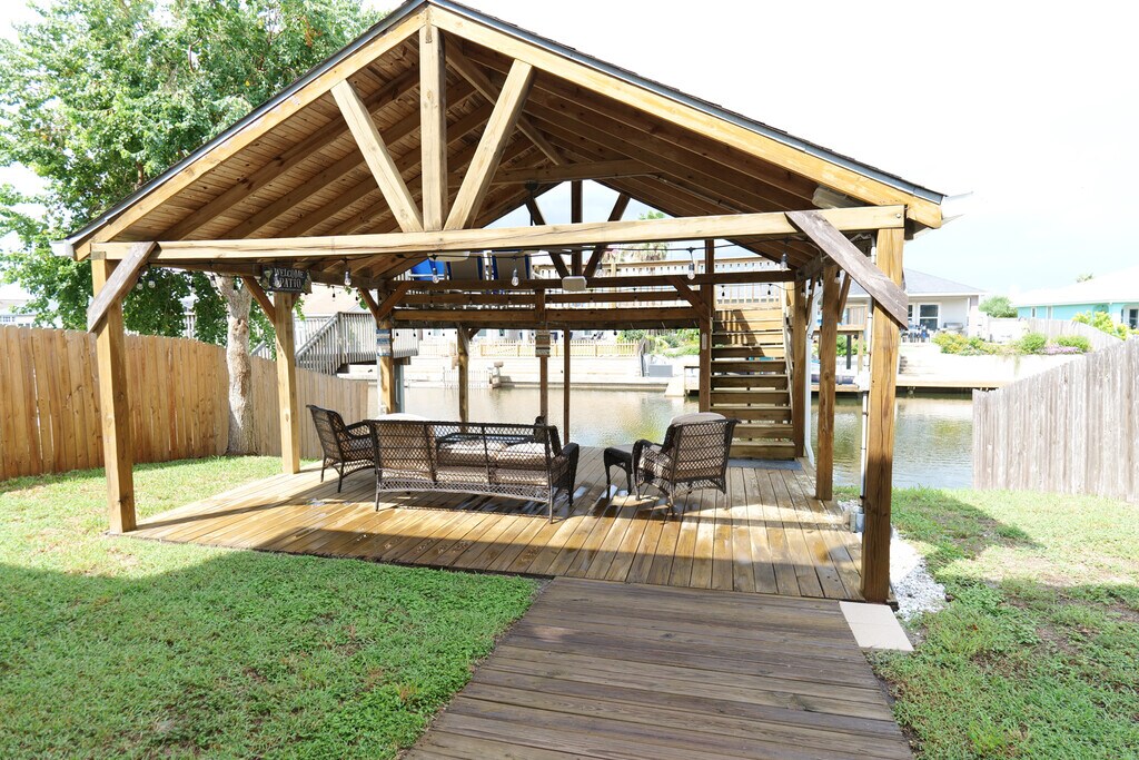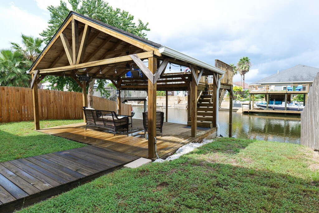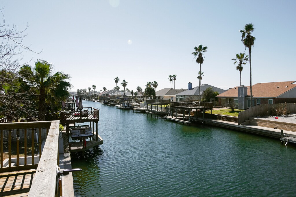 Imagine relaxing in your backyard, feeling the coastal breeze as the sun sets over a tranquil canal. At 15433 Cruiser, those moments become part of your everyday life. Just 5 minutes from the Gulf of America, this fully furnished duplex offers the perfect blend of comfort and coastal charm. Downstairs, the open kitchen and dining area look out onto the water, creating a perfect space to gather or enjoy a quiet meal. The living room is well-appointed with inviting furnishings and entertainment, making it easy to unwind after a day at the beach. Upstairs, you'll find two comfortable guest bedrooms, one with its own balcony overlooking the canal. The spacious master suite features a private balcony with water views, plus a large bathroom with a soaking tub and separate shower. Step outside to your private backyard oasis: a covered patio for warm afternoons and an elevated deck to soak in cool evenings by the water. Whether you're here for work or play, this home offers a true vacation-inspired lifestyle—every single day