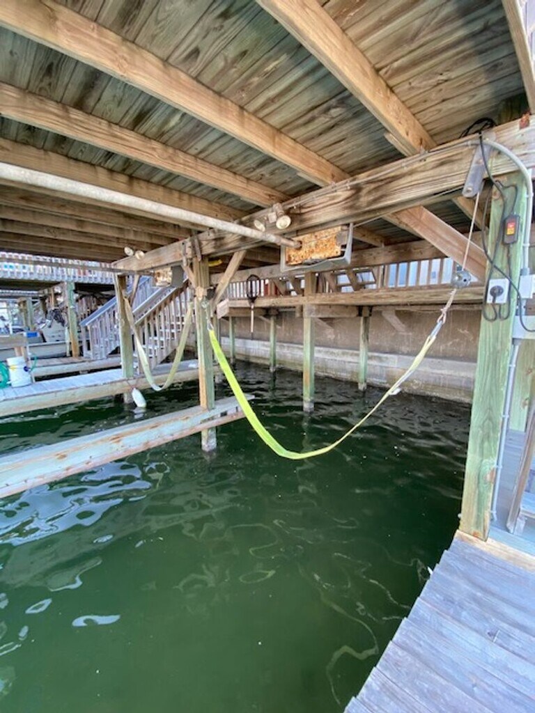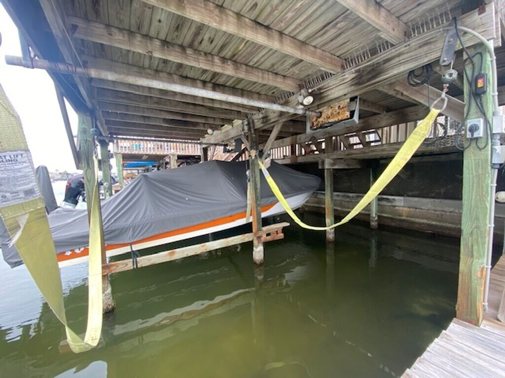 This beautiful end-unit townhome is ideally located across from Billish Park, offering easy access to boat ramps and a scenic walking/jogging path. Just a short drive away from the island's popular beaches and NAS-CC, this property combines convenience and coastal charm. With two stories of spacious living, this home features a covered boatlift perfect for water enthusiasts, and generously-sized bedrooms, each with walk-in closets and tray ceilings. The open-concept main level boasts wood-like ceramic tile throughout the common areas, crown molding, and tropical ceiling fans, creating a welcoming atmosphere. The living area features a water view and stacked stone fireplace for added warmth and style. Kitchen comes fully equipped with a washer, dryer and refrigerator and a new glass-top stove, dishwasher and built-in microwave, . For added convenience, the downstairs master suite features bath with dual sinks, a jetted tub and a large walk-in closet with custom built-in shelving. One car garage with automatic opener. Pet-friendly policy (small pets welcome with additional $25/mo rent and $200/deposit).