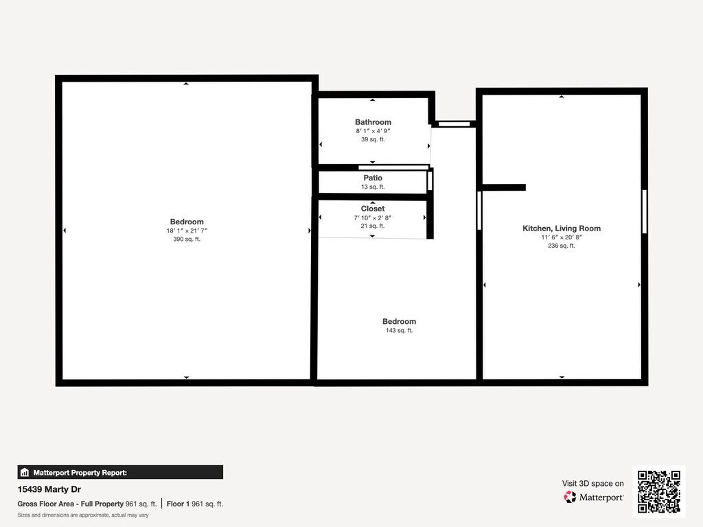 There is currently a 1 Bed 1 Bath Apartment for rent listed at 15439 Marty Dr. It is Available Now.