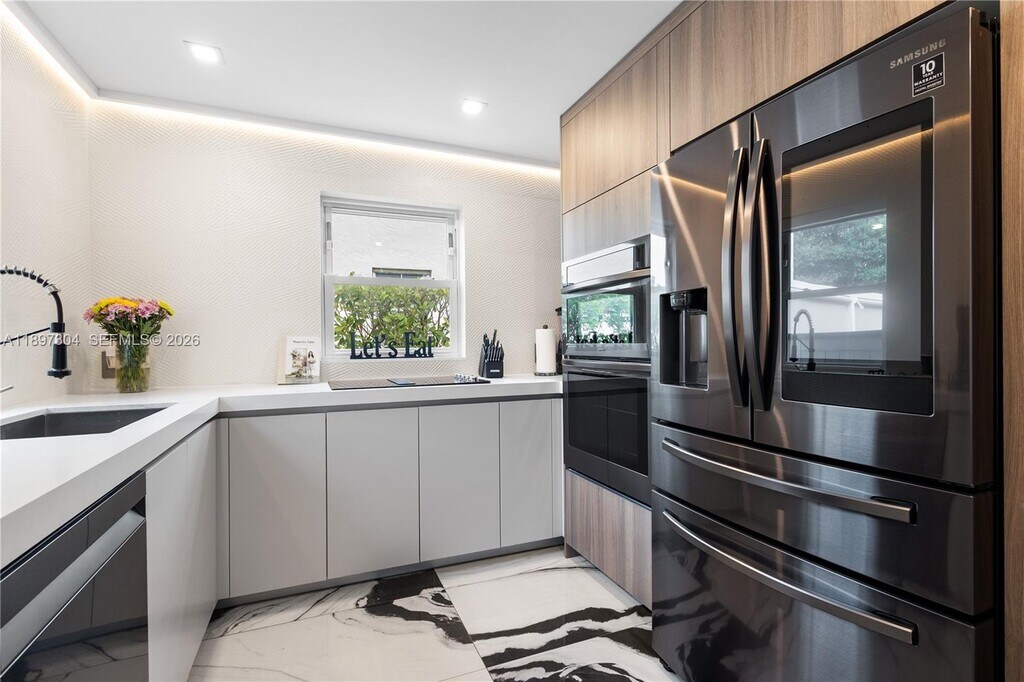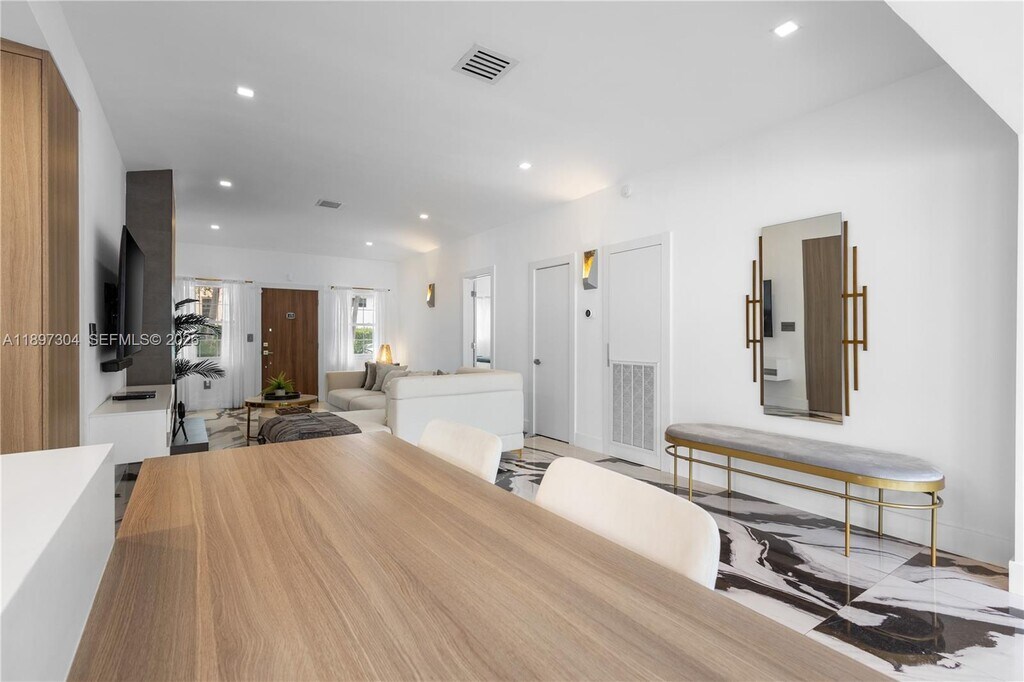 This beautifully remodeled contemporary style, furnished, 3 bedroom, 3.5 bathroom, single family home, boasts high ceilings and an open floor plan with private parking. With oversized impact balcony doors and windows that open up to a spacious private deck with abundant seating. This home has it all, custom built-ins, eat-in kitchen, abundant cabinet storage, stone countertops, high end stainless steel appliances, perfect blend of high style and modern conveniences. Located steps away from Lincoln Road, blocks away from great shops and the beach. MLS # A11897304
