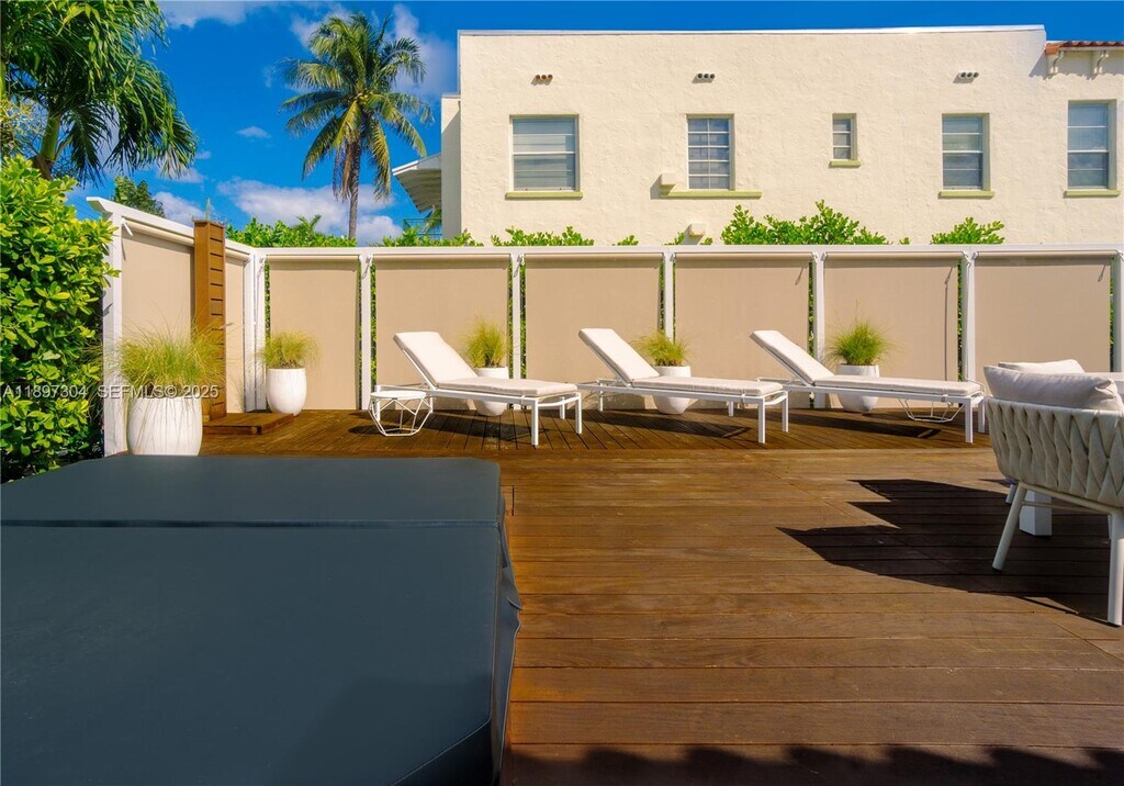This beautifully remodeled contemporary style, furnished, 3 bedroom, 3.5 bathroom, single family home, boasts high ceilings and an open floor plan with private parking. With oversized impact balcony doors and windows that open up to a spacious private deck with abundant seating. This home has it all, custom built-ins, gourmet gas stove and eat-in kitchen, abundant cabinet storage, stone countertops, high end stainless steel appliances, perfect blend of high style and modern conveniences. Located steps away from Lincoln Road, blocks aways from great shops and the beach. 2 back cottages also for lease, each cottage is approximately 760 sq. ft. Cottage 1 at $2,800 furnished, Cottage 2 at $2,800 unfurnished. Entire property can be leased together. MLS # A11897304