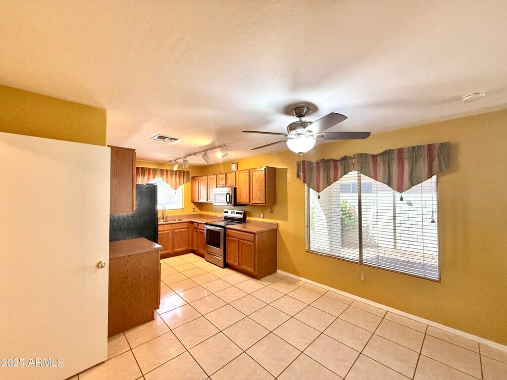 *$300 On Q Move In Credit with a 12 Month Lease* 1,377 SQ FT! 3-bedroom,2-bath home in Surprise's Countryside neighborhood. Desirable single-story floor plan. Charming kitchen with included appliances: Dishwasher,Dryer,Microwave,Oven,Refrigerator,and Washer. Spacious living areas,perfect for entertaining! Tile flooring in all the right places. Primary suite features a walk-in closet. This home offers 3 nicely sized bedrooms. Enjoy a backyard with a fenced yard,a grassy area,and a covered patio. 2-car garage! Located in the desirable Countryside community. Great Surprise location with nearby schools,parks,dining,and entertainment. Community amenities include biking/walking trails.