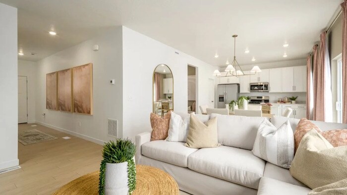 Brand new construction rental home offers four bedrooms, an open first-floor layout, and a private patio. All bedrooms are upstairs, highlighted by a primary suite with a walk-in closet and private bath. An unfinished basement is included for additional storage. This property allows self guided viewing without an appointment. Contact for details.