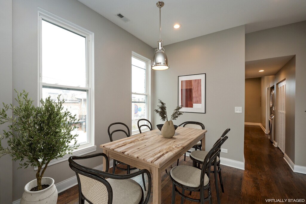 2017 Gut Rehab! Freshly gutted 2 bedroom unit in the heart of Wicker Park. Condo quality finishes throughout! Cook up a storm and entertain in the high-end Chefs kitchen(quartz countertops,beveled marble backsplash,SS appliances,garbage disposal,tons of cabinetry and island) that flows into the newly built large back deck with open sky views. The unit also features brand new(aka no squeaks) dark walnut hardwood floors throughout,in-unit laundry,tall ceilings with oversized windows for natural light lovers,beautiful bathroom with double sink,high efficiency HVAC,large coat closet,and a huge living room dining room combo area that can accommodate a huge sectional as well a whole dining room set. Parking included! MLS# MRD12514421 Based on information submitted to the MLS GRID as of [see last changed date above]. All data is obtained from various sources and may not have been verified by broker or MLS GRID. Supplied Open House Information is subject to change without notice. All information should be independently reviewed and verified for accuracy. Properties may or may not be listed by the office/agent presenting the information. Some IDX listings have been excluded from this website. Prices displayed on all Sold listings are the Last Known Listing Price and may not be the actual selling price.