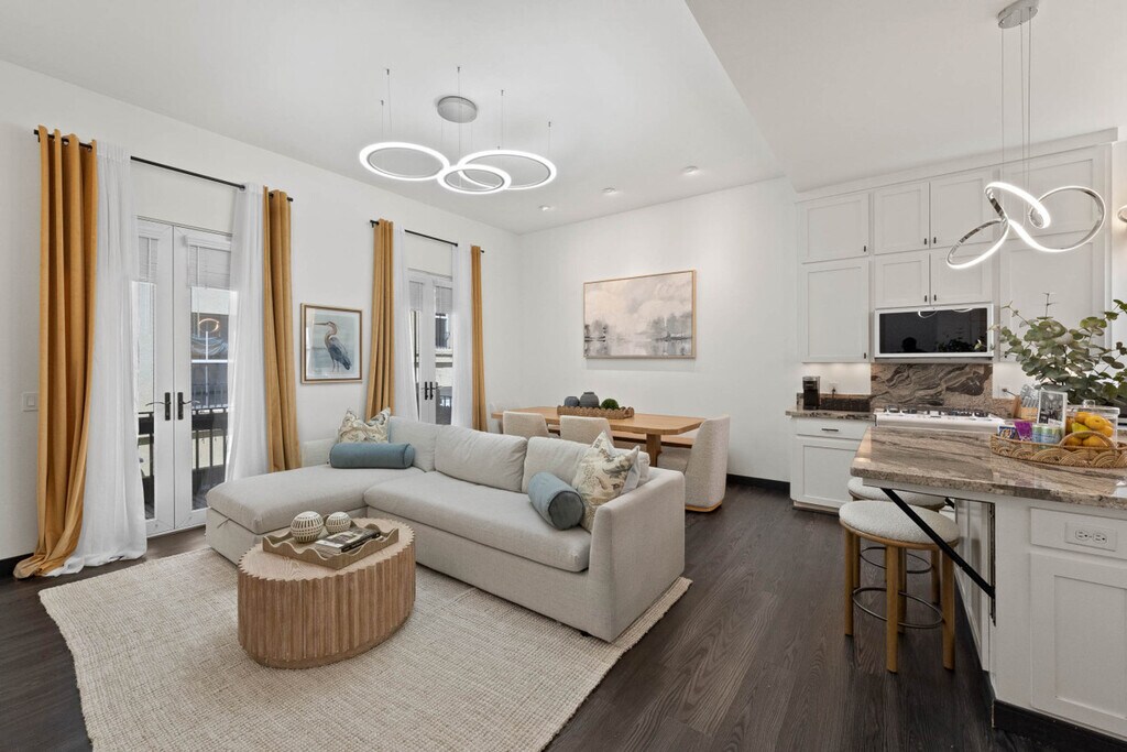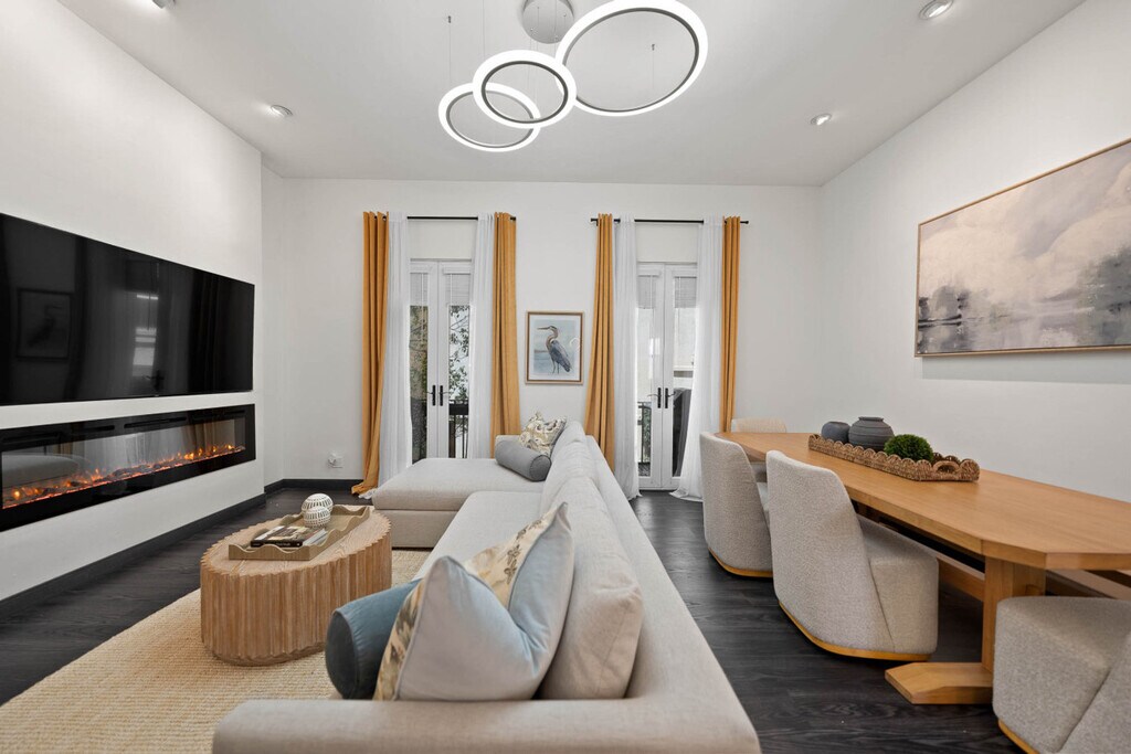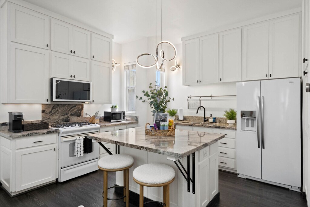 Discover "City Lights & Rooftop Nights!" This updated 2-bedroom townhome features a master suite with a king-size bed, a queen fold-out, and a walk-in wardrobe, a second bedroom with a queen bed and pull-out, plus a queen fold-out in the living room—perfect for families or friends. Enjoy a private rooftop lounge with a firepit and walkable access to top restaurants and attractions. The ideal urban escape for a relaxing, pet-friendly getaway! Our modern kitchen is stocked for everything from quick bites to family dinners, and the open living space features a 75” smart TV and updated furniture for cozy movie nights. The dining area comfortably seats four. We welcome one dog only (up to 60 lbs) for a fee of $100 per stay. This fee helps cover the additional cleaning required for pet hair. If any waste beyond hair (such as urine or feces) is found, an additional $200 cleaning fee will be charged. Guests are responsible for cleaning up after their pet, and dogs should not be left unattended in the home, as barking may disturb neighbors. Located in the heart of the vibrant Core-Columbia neighborhood, "City Lights & Rooftop Nights" puts you steps from San Diego’s top attractions. Explore Little Italy, the Gaslamp Quarter, and the Marina—all within walking distance—making it a perfect base for foodies, families, and explorers alike. This neighborhood offers the perfect blend of energy and convenience. It’s a safe, walkable area popular with locals and visitors alike. Distances to top spots include 0.9 miles to Gaslamp Quarter, 1.0 mile to Little Italy, 1.0 mile to Petco Park, 1.3 miles to Maritime Museum, 2.0 miles to USS Midway Museum, and 7.0 miles to Mission Beach. Most attractions are within walking distance, with trolley and bus access nearby. Uber and Lyft are fast and affordable options, and Lime and DecoBike are available for biking. "City Lights & Rooftop Nights" is located on a small cul-de-sac, where street access and turning can be tight. We offer garage parking, but the space is best suited for compact vehicles. If you're driving a midsize or larger car, we recommend using nearby overnight street parking for a smoother, stress-free experience. This is a 3-story townhome. Bathrooms are located on the upper and lower levels, and not on the main living/kitchen floor. The rooftop is accessed via an attic staircase from the master bathroom. While it's a great feature, those with mobility concerns may find the access challenging. Maximum occupancy is 4 overnight guests, per city regulations. Exceeding this limit may result in fines or eviction. Quiet hours are from 10 PM to 10 AM. Excessive noise or disturbances may result in immediate eviction without refund. Smoking or vaping is not allowed indoors, including cigarettes, marijuana, or e-cigarettes. Any cleaning or damage costs will be charged to the primary guest. Late checkout may result in a fee of up to $200 unless approved in advance. Fines may apply for violations of house rules or city ordinances, including Code Enforcement penalties. Includes high-speed Wi-Fi and a digital guidebook with local recommendations. [SI]