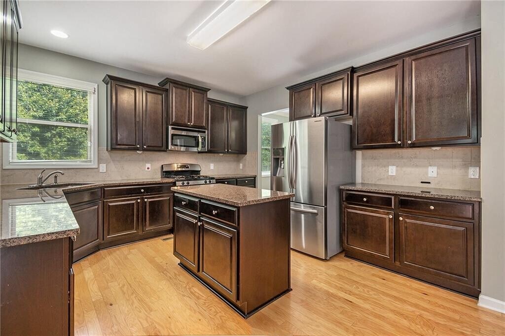 Excellent opportunity for a move-in ready home located on a quiet cul-de-sac lot. This home features a bedroom and full bathroom on the main floor with 4 additional bedrooms upstairs. Main floor has Hardwood floors,Two story Foyer,separate Living & Dining Room plus Family Room with Fireplace. Kitchen features SS appliances,Granite counters,Tile Backsplash,Island,Pantry closet,and Eat-in area. Deck overlooks wooded and fenced-in Backyard. Second floor carpet less than a year old! Large Primary Bedroom and Bathroom with double vanities,soaking tub,separate shower,and walk-in closet. Unfinished basement makes for great game room or additional storage. Neighborhood amenities include pool,tennis,playground,and basketball court. Location is just minutes to Kennesaw Mountain State Park,Marietta Square,Shopping and Restaurants. MLS ID 7724449