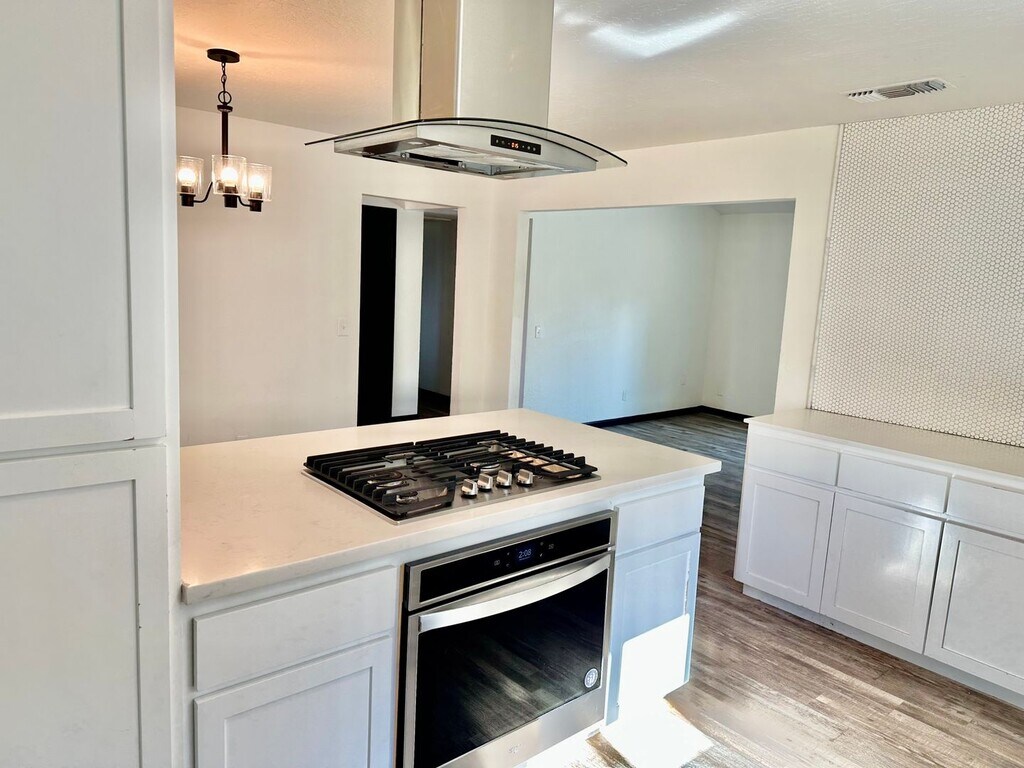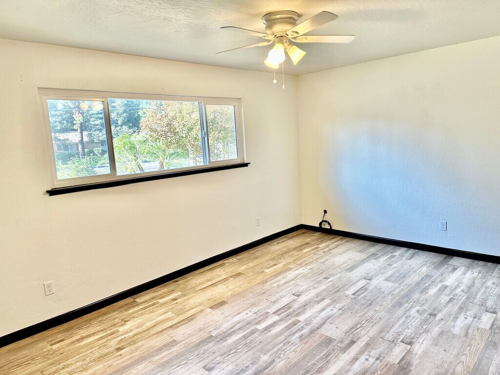 Nicely updated 3 -bedroom 2-bath home in Clovis. This home offers an open floor plan with vinyl plank flooring, vaulted ceilings, and wood burning fireplace. The kitchen includes ample cabinet space with quartz countertops and stainless steel appliances. Both bathrooms have been fully renovated and all 3 bedrooms are incredibly spacious. The oversized lot offers plenty of yard space for kids to play and includes mature citrus trees and large concrete area for entertaining. Additional fenced side space is a great place for additional parking and storage.