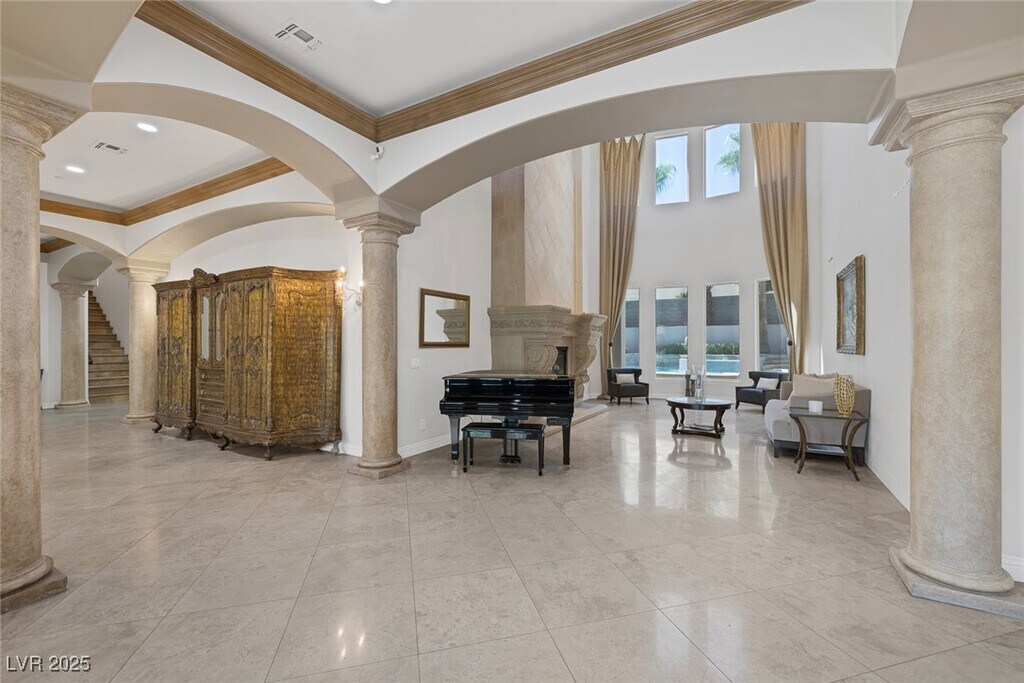Welcome to this FULLY FURNISHED Guard-Gated ESTATE in Seven Hills. This Luxorious Estate boasts 4 Bedrooms & 6 Bathrooms. Highlights include a Movie Theater, 2 Seperate Laundry Rooms, a Walk-In Wine Cellar, Executive Office, Front & Rear Staircases, & a Downstairs Ensuite guest room. The kitchen features upgraded stainless steel appliances, custom cabinets, & a walk-in pantry. The family room is complete with a built-in entertainment wall panel, wet bar & fireplace.The second level features a primary bedroom with a fireplace, balcony, & grand bathroom with dual sinks, a built-in vanity, & a separate tub & shower. The 3rd & 4th bedrooms are each ensuite bedrooms complete with their own bathrooms & share balcony access. Outside, the backyard boasts a swimming pool, jacuzzi, BBQ & RV/Boat Parking. The front yard includes an Expansive cobblestone driveway & Elegant Landscaping. As an extra added perk, Pool Maintenance, Landscaping, Trash, Sewer & Tenant Portal Fee are included in rent!