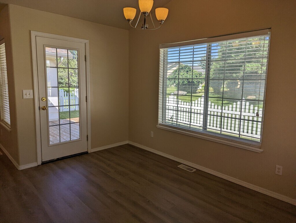 Well-maintained home on a quiet cul-de-sac. Located in a quiet community with walking paths, and streams. 3 bedrooms, 2 bathrooms, Large master suite with a walk-in closet and sitting area. The kitchen opens to two spaces; a dining space and a flex space. The living room has a gas fireplace. All kitchen and laundry appliances are included. Two patio spaces within a fenced yard. Lawn service is provided, and the tenant cares for garden beds. The tenant pays all other utilities.