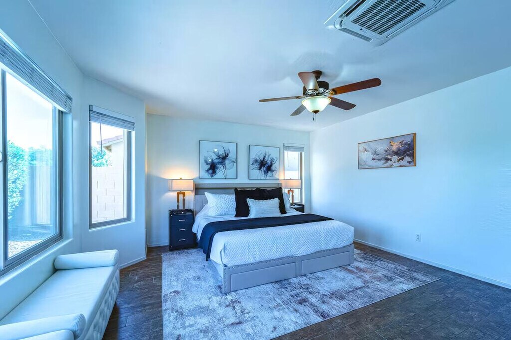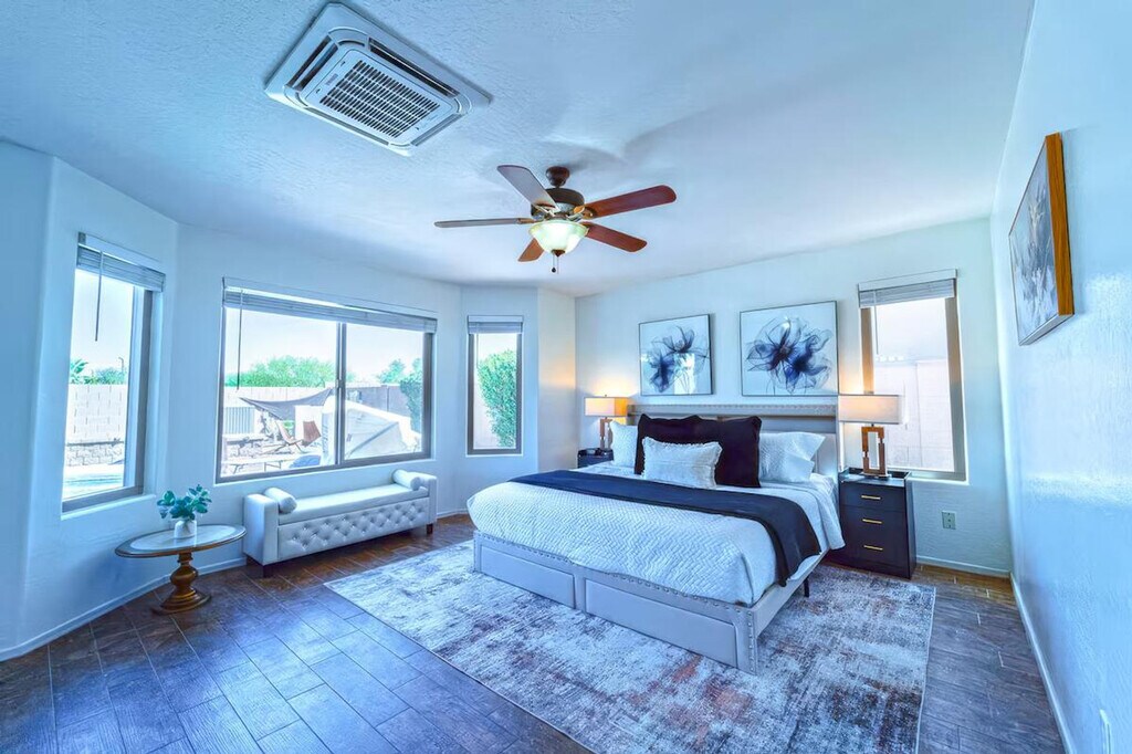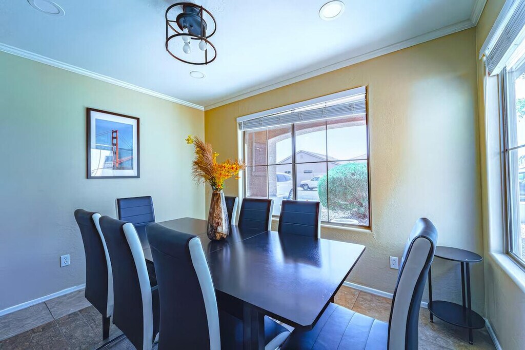 The advertised rate of $3,727/month is the lowest available price, based on a 1 month(s) stay with a move-in date of April 17, 2026. Rates vary depending on the duration of stay, season, and other parameters. For exact pricing and additional pricing components, please visit our website and enter your desired move-in and move-out dates. The rate is applicable when billed upfront; it can be higher if billed in multiple payments. Experience refined comfort and feel at home in this elegant 4-bedroom Casa Grande retreat. This single-level home offers easy accessibility throughout. This desert sanctuary is designed for comfort, style, and connection, blending upscale finishes with a relaxed ambiance. The fully equipped modern kitchen includes a refrigerator, freezer, oven, electric stove with 4 burners, microwave, dishwasher, blender, cooking basics, a Keurig coffee maker, a baking sheet, barbecue utensils, dishes, silverware, and wine glasses. Essentials provided include towels, bed sheets, soap, shampoo, conditioner, and body soap. Enjoy the heated private pool, fire pit lounge, BBQ grill, outdoor dining area, sun loungers, and daybed. Additional amenities include air conditioning and heating, an in-unit washer and dryer, hot water, an iron, a hair dryer, and cleaning products. Private parking is complimentary. Located in a tranquil residential area, this apartment is minutes from Casa Grande’s best attractions, including Promenade at Casa Grande, BeDillon’s Restaurant & Cactus Garden, Big House Café & Anaya’s Fresh Mexican Restaurant, Francisco Grande Golf Course, Casa Grande Ruins National Monument, and Neon Sign Park & Pinal County Historical Museum. Pool heat is provided free of charge and set to 85°F. The system cannot support temperatures above this, and it cannot be guaranteed that the pool will stay warm during colder nights, as heat may escape overnight. High-speed Wi-Fi ensures seamless streaming or work connectivity, while a dedicated workspace offers a quiet corner for productivity. [SI]