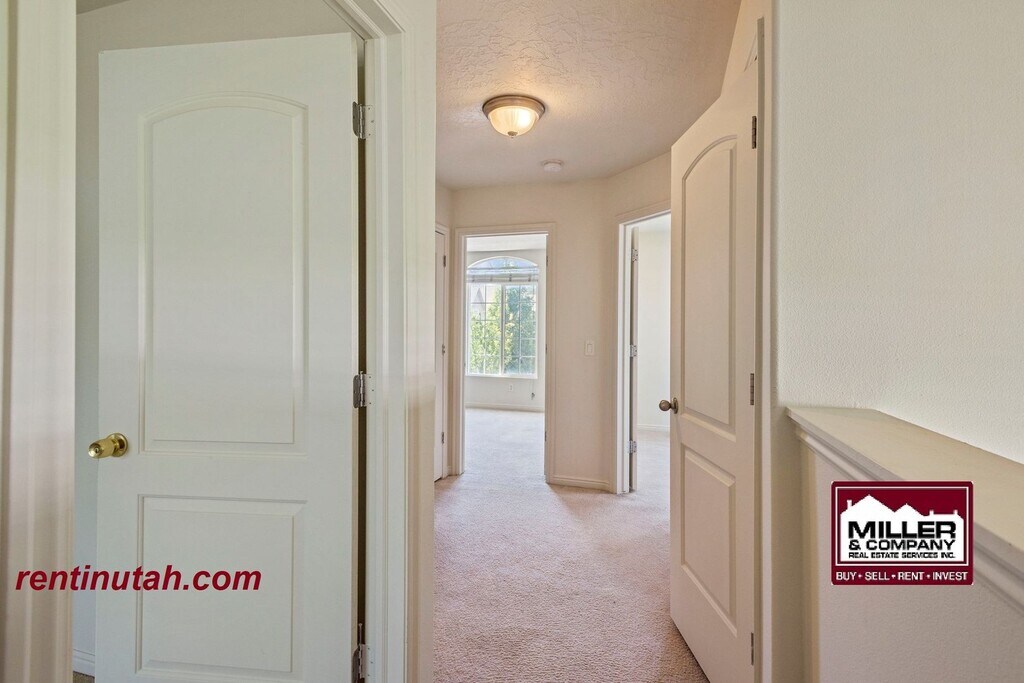 Discover the charm and convenience of this townhome nestled in a gated community. Located just blocks away from I-215, commuting has never been easier. The convenience continues with easy access to bus and trax stations, making transportation a breeze. Enjoy the serenity of parks and the Jordan Trail parkway park just moments away from your doorstep. The main level offers a spacious living room, kitchen and dining room with a sliding glass door leading to a small, private backyard space. Brand new flooring in the upstairs hall and bedrooms. Pergo flooring in living room and lino in kitchen and bathrooms is only a few years old! With a 1-car garage, ample guest parking, a spacious floor plan and an ideal location, this home has it all! WATER, SEWER, TRASH are included in rent. Square footage is approximate. Tenant to verify all information.
