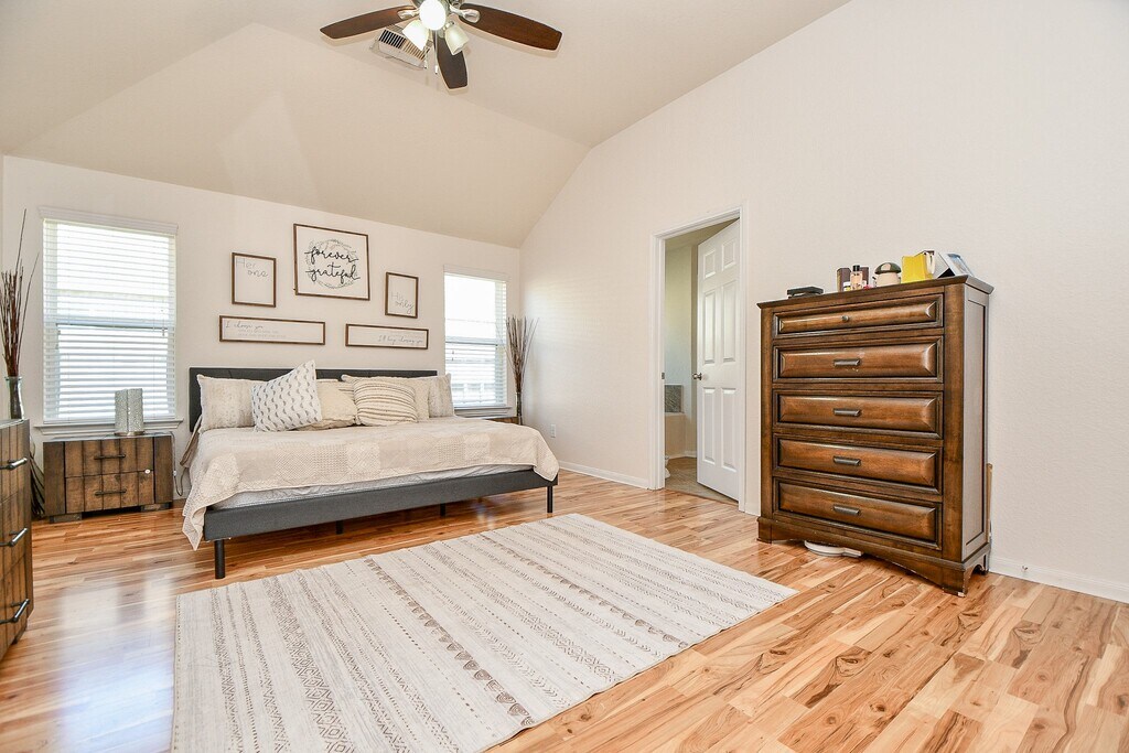 Beautiful home in Grant Meadow’s is located in the prestigious CY-Fair school district. The kitchen features an island kitchen with granite countertops,black appliances,and recessed lighting. Enjoy a cup of coffee in the breakfast nook with bay windows!! Following the kitchen is the living room with laminate floors,a formal dining,and a study with French doors and trey ceilings. His and her sinks are in the master bathroom with a garden tub. There is a separate shower and door leading to a private patio from the master bedroom. The secondary rooms are ample sized with great closets! The backyard has a covered porch and overlooks the retention pond with no back facing neighbors. A three car garage gives hobby lovers plenty of space to have fun. Easy access to HWY 249 and the grand parkway make this home easily accessible. Come check it out! MLS# 88270485