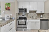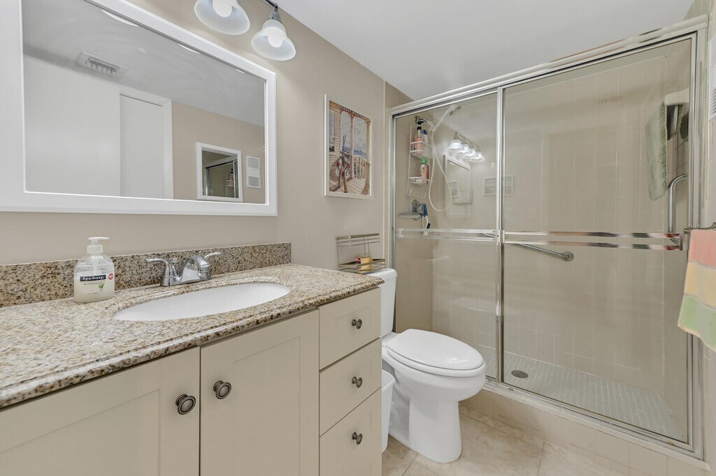 Welcome to this beautifully updated first-floor condo in the desirable Lakes of Delray, a vibrant 55+ community in Delray Beach. This 2-bedroom, 2-bath residence offers comfort, convenience, and a stunning lake view. The primary suite features a spacious walk-in closet and an en-suite bath, while both bathrooms have been tastefully updated. The modern kitchen is complete with granite countertops, stainless steel appliances, and ample storage. A screened Florida room provides the perfect spot to relax and enjoy serene lakefront views. Additional highlights include an in-unit washer and dryer, air conditioning (2011), and hot water heater (2014)