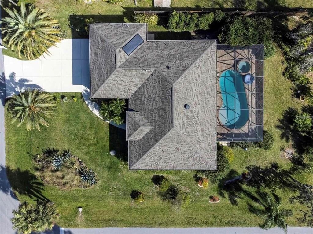 Welcome to your fully furnished haven! Nestled on a spacious corner lot,this 3-bedroom + den/office,3-car garage POOL home offers unparalleled elegance and tranquility. As you step onto the property,lush landscaping and a brand-new roof immediately catch your eye,setting the stage for ultimate curb appeal. But the allure doesn't end there; the possibility of renting the vacant lot just behind the house adds to the exclusivity,offering a private retreat enveloped in the serene embrace of nature. Enter through the etched glass double doors into a meticulously designed open floor plan,where sliding glass doors reveal captivating views of the pristine heated pool,spa,and lanai from nearly every room. The cascading waterfall over the spa invites you to savor the tropical paradise or take a refreshing dip. The heart of this home lies in its inviting eat-in kitchen adorned with granite countertops,a closet pantry,and panoramic views of the pool – a culinary haven where every meal becomes a delightful experience against the backdrop of your private oasis. Designed for both entertaining and unwinding,the split floorplan ensures privacy. The primary suite,a retreat within itself,features a spacious bedroom with a tray ceiling,dual closets,a luxurious bathroom boasting double sinks,a walk-in shower,private access to the pool,and a generous soaking tub. Additionally,a versatile flex room awaits that would be perfect for an office,den,or an optional 4th bedroom. Let the sunshine in through beautiful plantation shutters adorning many windows,adding both style and practicality. The 3-car garage,complete with storage cabinets,provides ample space for beach gear,bikes,kayaks,and more – a practical luxury for the Florida lifestyle. Surrounded by breathtaking landscaping,fruit trees,and a shed on the vacant lot for additional storage,this home epitomizes beauty,privacy,and functionality. Convenience is at its pinnacle with local amenities,entertainment,and sandy beaches just a short 25-minute drive away.