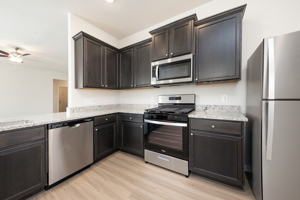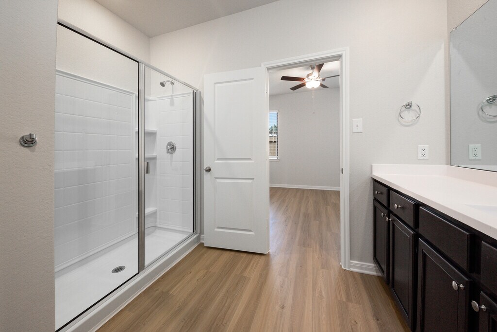 Designed with you in mind, the Acacia floor plan by LGI Living is a single-story home that offers three spacious bedrooms, open entertaining areas, and comes outfitted with an impressive selection of upgrades. The chef-ready kitchen includes stunning wood cabinetry, granite countertops, a full suite of stainless steel, energy-efficient Whirlpool® appliances, an undermount sink and luxury vinyl plank flooring. You will love coming home to the master retreat that features two large windows with views of the private, fully fenced, back yard. The attached bath is equipped with a large countertop, dual shower and bathtub, and a large walk-in closet for all of your storage needs. This home includes many designer extras such as double-pane Low-E vinyl windows, LED flush mount ENERGY STAR lights in the kitchen, and an attached 2-car garage paired with a Wi-Fi-enabled garage door opener. Each home at Sweetwater Ridge comes equipped with an array of designer upgrades and fine finishes. Gorgeous front yard landscaping and fully fenced back yards create exceptional curb appeal that all your guests will be talking about. Interior features like Whirlpool® kitchen appliances, granite countertops, recessed ENERGY STAR LED lighting, designer plank flooring, faux wood blinds and ceiling fans provide style and value to every home in this stunning new community.