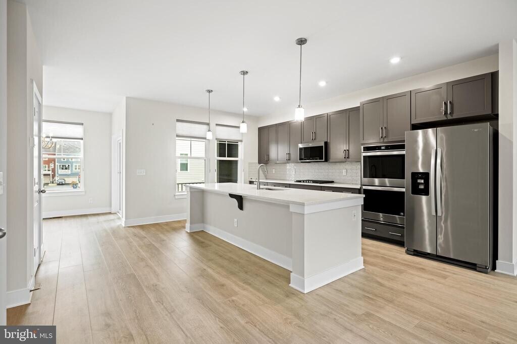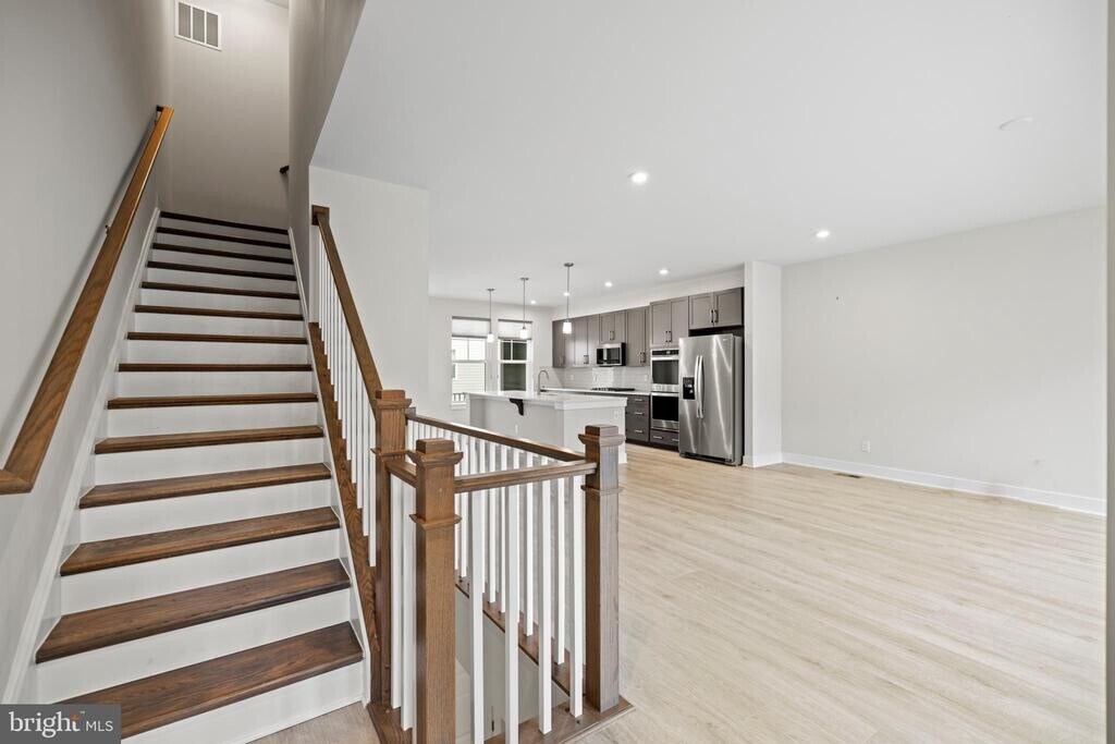 Bells, whistles, upgrades, bump outs, and fresh paint. -- this home has it all for your pride and enjoyment! Rent even includes pro landscaping, so you have one less thing to maintain in life, while garage, driveway, and street provide for no worries parking. Inside the front door, you are greeted with a bedroom complete with full bathroom great for guests or a gym, plus a den, and built in drop zone for your bags and shoes by the garage entry. Up one flight of stairs the main level is open with soaring ceilings, abundant light (both overhead and sunlight that streams from front to back), highlighting spaces for living, dining, and upgraded gourmet kitchen with breakfast bar at center stage. Covered balcony gives you an outdoor grilling and living option too! Up one more level, you have bedrooms and bathrooms galore, plus convenient laundry. The master bathroom and owner upgraded walk in closet alone are luxuries. But wait, there's more - a top floor for creative space, work, study, yoga, play or entertainment since it walks out to the rooftop deck just waiting for evening conversations or daytime cool drinks if you roll out the canopy overhead. Move right in and start enjoying all the activities, amenities and schools that Potomac Shores is coveted for, in addition to the prime location for Fort Belvoir and Quantico both.