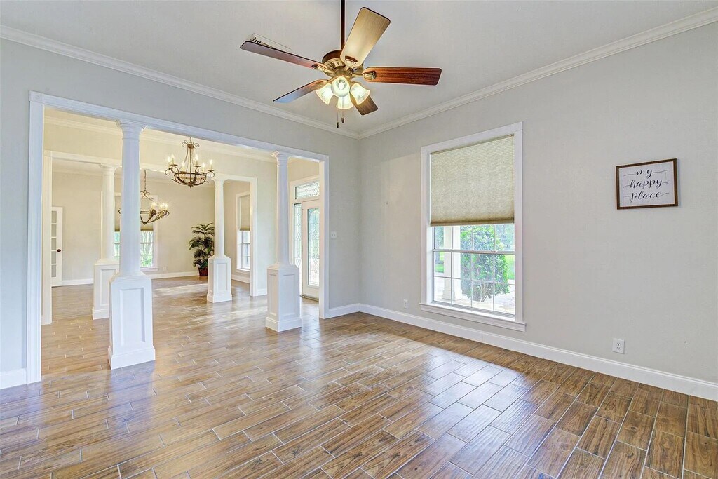 A true show-stopper on 4.45 peaceful acres,welcome to this custom built estate delivering standout design,quality & space inside and out. Set among towering pines & mature hardwoods,the home was built w/ intention from the ground up featuring custom cabinetry,detailed crown molding and wood-look tile flooring throughout. The completely renovated kitchen is the kind that turns heads: a chef-ready layout with a large island,quartz counters and a Viking gas range all opening to the breakfast area and family room w/ built-ins and a fireplace. High ceilings & a welcoming entry pull you through a smooth,functional floor plan made for everyday living & effortless entertaining. The private primary suite frames views of the surrounding acreage while the outdoor amenities elevate the experience even further—wraparound porches,a large covered gazebo w/ a full outdoor kitchen & plenty of space for guests and gatherings. A must-see for anyone wanting an estate that truly makes an impression. MLS# 36249381