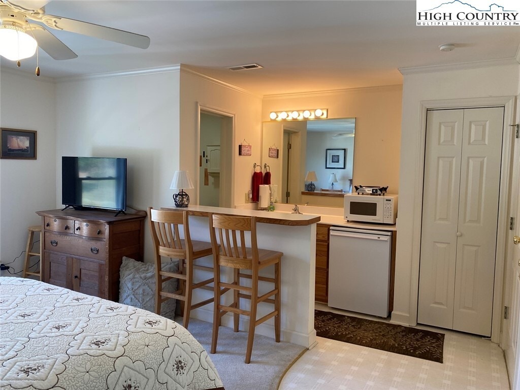 RENTAL,AVAILABLE NOVEMBER - Utilities Included* - Jefferson Landing Golf Club & Resort. SUITE features queen bed,Recliner,SmartTV,WIFI,mini-fridge,coffee maker,microwave,1 burner hot plate,Airfryer,plates,silverware,linens,full bath. Eat In Bar with 2 bar stools. (3rd Floor Walk up) *Utilities include electricity,WIFI,water,sewer,trash pick up,lawn care. This unit does not offer a laundry area. Convenient to downtown West Jefferson,NC. No Smoking. Price based on a 12 month lease. This rental will accept 3+ Months Stays - call for details!