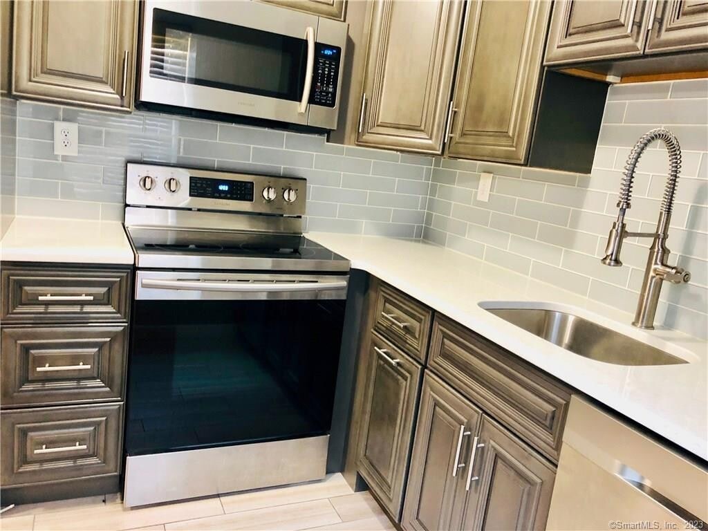 Call for Availability - Come see this Beautiful renovated first floor unit located in Mill River Meadows. This home features 2 bedrooms and 2 full baths, with laminate flooring throughout. One bathroom features a double sink and tub while the other has a stand-up shower. The living room offers access to the private lightly wooded backyard. Kitchen has been upgraded with quartz countertops, new cabinets, and stainless-steel appliances. MLS# 24121971