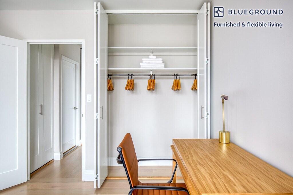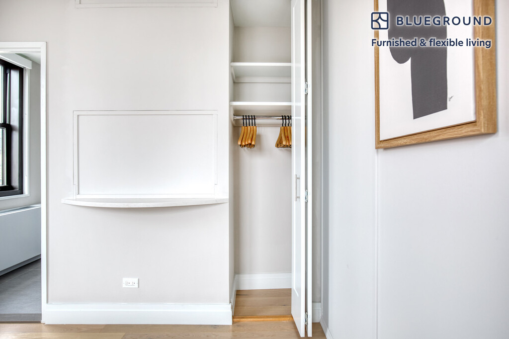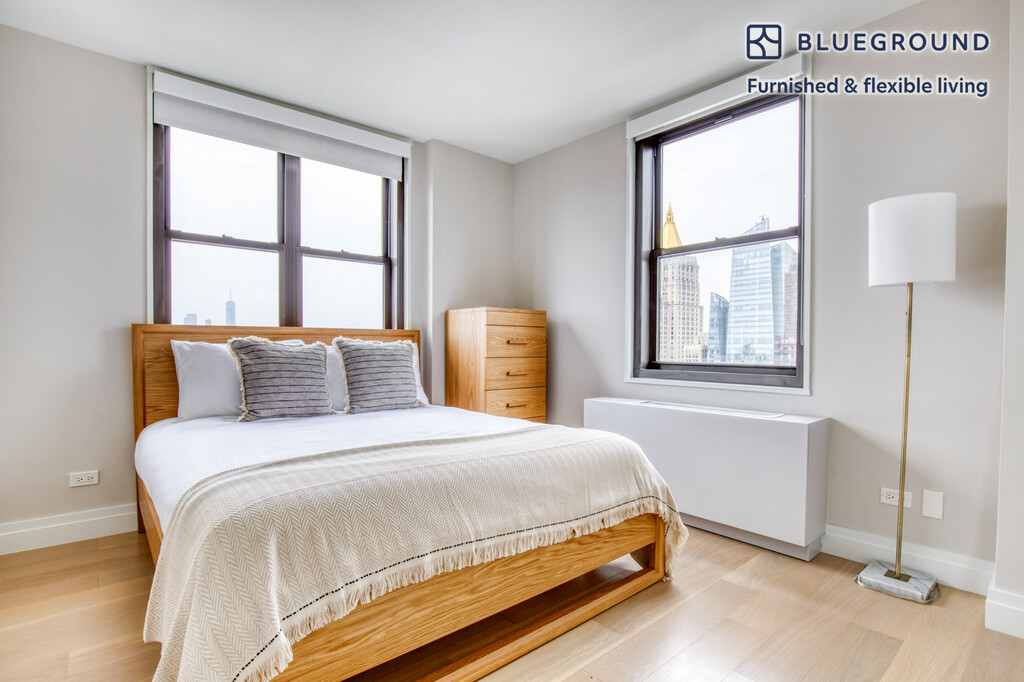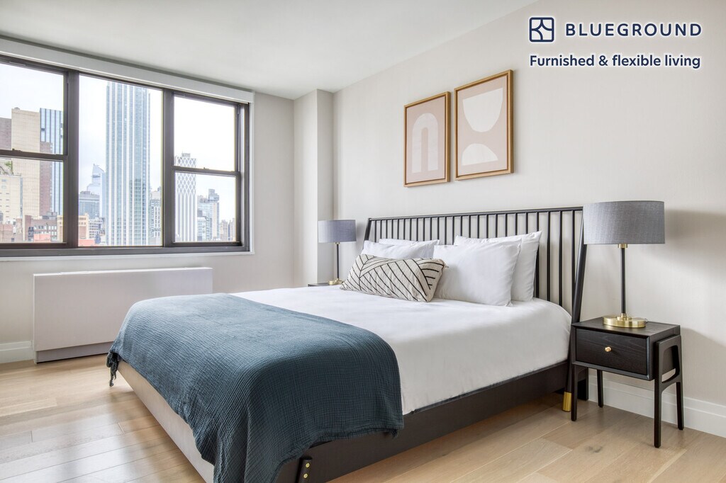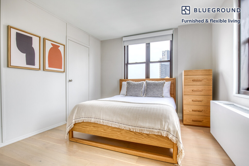 Feel at home wherever you choose to live with Blueground. You’ll love this lovely Rose Hill furnished two bedroom apartment with its modern decor, fully equipped kitchen, and pretty living room with great high floor views. Ideally located, you’re close to all the best that New York has to offer! (ID #NYC623) The advertised rate of $5,650/month is the lowest available price, based on a 6 month(s) and 4 day(s) stay with a move-in date of August 1, 2026. If you’re looking for a 1-year stay, the rate is $6,170/month. Rates vary depending on the duration of stay, season, and other parameters. For exact pricing and additional pricing components, please visit our website and enter your desired move-in and move-out dates. The rate is applicable when billed upfront; it can be higher if billed in multiple payments. Brokers are welcome to reach out. Were you looking for an unfurnished lease? Try Blueground instead and upgrade from unfurnished to furnished living: - Furnished at rates comparable to unfurnished - No setup or furniture costs - save thousands - Move-in ready - save time, just bring your suitcase Designed with you in mind As with any Blueground apartment, you’ll find a thoughtfully designed space complete with beautiful furniture and a fully equipped kitchen in this two bedroom property. And, thanks to our superior quality mattresses, luxury linens, and towels, you can relax knowing you’ll always feel comfortably at home. When you’re ready for some fun, you can take in the New York vibes or bring the entertainment to you with the premium wireless speaker or smart TV. Sleeping arrangements King Bed, 70.8in/180cm Queen Bed, 63in/160cm Amenities Building amenities unique to this two bedroom apartment include an on-site: - Doorman - Dryer in building - Elevator - Swimming pool - Washing machine in building - Pets allowed - Sauna Arrival and ongoing support The entire apartment is yours to enjoy! Throughout your stay, you’ll have access to our Client Experience team through the Blueground App. You can schedule additional cleanings, submit maintenance requests, and view our neighborhood recommendations with just a few taps. We’ll share all details upon confirmation of your stay. Other things to note Building amenities may have an extra cost. This Blueground apartment has flexible lease options, allowing you to book it for one month, a year, or more. Pets are welcome, though weight limits and breed restrictions apply and may incur fees. Brokes CYOF. We take great pride in ensuring every photo displayed is shot in our own units with our actual furnishings. That said, we regularly refresh our decor and furniture arrangement, which may differ from what’s pictured. [SI]