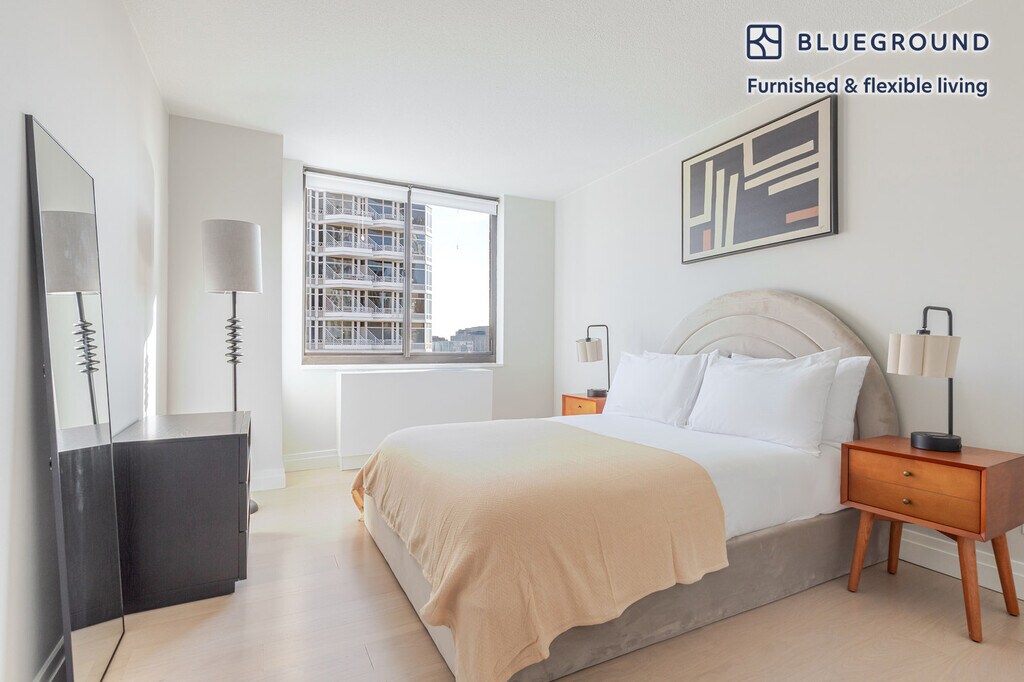 Show up and start living from day one in New York with this beautiful one bedroom Blueground apartment. You’ll love coming home to this thoughtfully furnished, beautifully designed, and fully equipped Kips Bay home. (ID #NYC2191) The advertised rate of $3,000/month is the lowest available price, based on a 2 month(s) and 9 day(s) stay with a move-in date of December 30, 2026. If you’re looking for a 1-year stay, the rate is $5,530/month. Rates vary depending on the duration of stay, season, and other parameters. For exact pricing and additional pricing components, please visit our website and enter your desired move-in and move-out dates. The rate is applicable when billed upfront; it can be higher if billed in multiple payments. Brokers are welcome to reach out. Were you looking for an unfurnished lease? Try Blueground instead and upgrade from unfurnished to furnished living: - Furnished at rates comparable to unfurnished - No setup or furniture costs - save thousands - Move-in ready - save time, just bring your suitcase Designed with you in mind Thoughtfully designed with bespoke finishes, modern furnishings, and a fully equipped kitchen, you’ll enjoy that “I’m home” feeling with this Blueground apartment. Whether you’re lounging in your cozy living room streaming the latest and greatest entertainment on the smart TV or premium wireless speaker, or getting some well-earned rest on the superior quality mattress with luxury linens, you’ll fall in love with everything this Kips Bay apartment has to offer. Sleeping arrangements Queen Bed, 63in/160cm Amenities Building amenities unique to this one bedroom apartment include an on-site: - Doorman - Elevator - Swimming pool - Lounge - Sauna Arrival and ongoing support The entire apartment is yours to enjoy! Throughout your stay, you’ll have access to our Client Experience team through the Blueground App. You can schedule additional cleanings, submit maintenance requests, and view our neighborhood recommendations with just a few taps. We’ll share all details upon confirmation of your stay. Ideally Located This furnished property is situated in Kips Bay. Stretching from the East River to Lexington Avenue, the peaceful neighborhood offers convenience and easy access to the rest of the city. Several hospitals are located here, making it a hub for medical care. Kips Bay offers dining options for every budget as well as numerous cinemas and fitness centers. During the weekends, locals stroll alongside the water, take the water taxi to another borough, or hang out in one of the parks, such as Bellevue South. From here, Rockefeller Center is only 20 minutes away by subway. Other things to note Building amenities may have an extra cost. This Blueground apartment has flexible lease options, allowing you to book it for one month, a year, or more. Brokes CYOF. We take great pride in ensuring every photo displayed is shot in our own units with our actual furnishings. That said, we regularly refresh our decor and furniture arrangement, which may differ from what’s pictured. [SI]