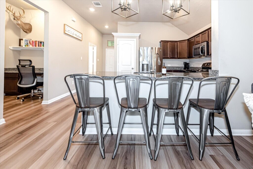 Beautiful home 3 bedroom,2 bath home located in the Sterling Ridge neighborhood! Bright,open-concept floor plan,high ceilings with large windows. The kitchen features a breakfast bar,stainless steel appliances,and granite countertops. Split bedroom floor plan arrangement,with an oversized primary suite including an ensuite bathroom that has a soaking tub,dual sinks,with a walk-in shower. The small workspace/desk is secluded and perfect for a home office area. The backyard is fenced and features a patio. MLS# 89328553