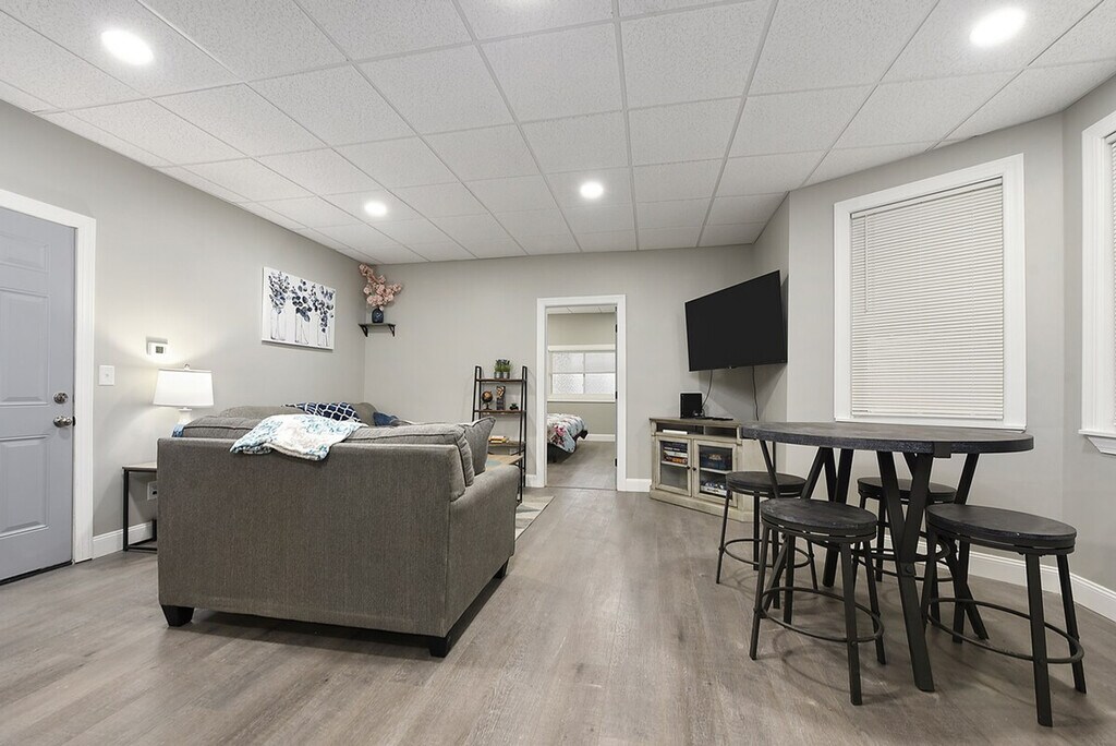 Meet your new Mount Washington getaway! Feel at home in this newly renovated 3-bedroom home in a centrally located community. The kitchen is fully stocked with a gas stove, dishwasher, oven, Keurig coffee machine, kettle, and all the cookware and tableware required to prepare a gourmet meal. There are 2 dining tables, and four people can be seated at each table. Savor unwinding on the cozy couches as you watch your preferred series on the high-definition smart TV. The bathroom has a shower and a bathtub and was recently renovated with a modern aesthetic. Use the hair dryer, body wash, conditioner, shampoo, and premium towels that are provided, along with the personal care products. A washer and dryer are located in the basement available for guests to use at no additional cost. Guests have access to a shared concrete backyard area with an outdoor table and chairs to accommodate up to 6 guests. The backyard is also a space for dogs. There is a parking spot in the back for 1 vehicle, and there is street parking in the front. A pack-and-play is available for use. Close and convenient to Duquesne Incline (upper station (1 min / 0.3 miles)), PPG Paints Arena (7 mins / 2.2 miles), downtown (8 mins / 2.3 miles), PNC Park (10 mins / 4 miles), and Acrisure Stadium (11 mins / 2.9 miles). Other fantastic places to explore include Point State Park (9 mins / 2.4 miles), Andy Warhol Museum (11 mins / 2.9 miles), Rivers Casino (11 mins / 3.6 miles), National Aviary (12 mins / 4 miles), Carnegie Science Center (12 mins / 4.4 miles), Phipps Conservatory (14 mins / 4.9 miles), Pittsburgh Zoo and Aquarium (15 mins / 8.8 miles), Sandcastle Water Park (20 mins / 8.9 miles), and Kennywood Park (24 mins / 11.7 miles). Colleges/Universities within a 15 minute drive include Point Park University (5 mins / 2 miles), Duquesne University (6 mins / 2 miles), Carlow University (7 mins / 3.5 miles), University of Pittsburgh (11 mins / 4.3 miles), and Carnegie Mellon University (14 mins / 4.8 miles). Hospitals within a 15 minute drive include UPMC Magee-Womens Hospital (7 mins / 3.6 miles), UPMC Mercy (7 mins / 2.5 miles), UPMC Montefiore (8 mins / 3.7 miles), Select Specialty Hospital (9 mins / 3.9 miles), UPMC Presbyterian (10 mins / 3.9 miles), UPMC Children's Hospital ( 11 mins / 5.1 miles), Pittsburgh VA Medical Center (11 mins / 4.8 miles), West Penn Hospital (12 mins / 5.1 miles), Allegheny General Hospital (13 mins / 4.3 miles), and Western Pennsylvania Hospital (14 mins / 6.9 miles). The home includes 3 real beds but can accommodate up to 8 guests. Sleeping arrangements for the 7th and 8th guest are on the couch, which would be best suited for a child, or an adult if he/she is willing. If one guest is a baby/young child using the pack-and-play, we would be willing to accommodate 9 guests. High-speed reliable Wi-Fi is available. [SI]