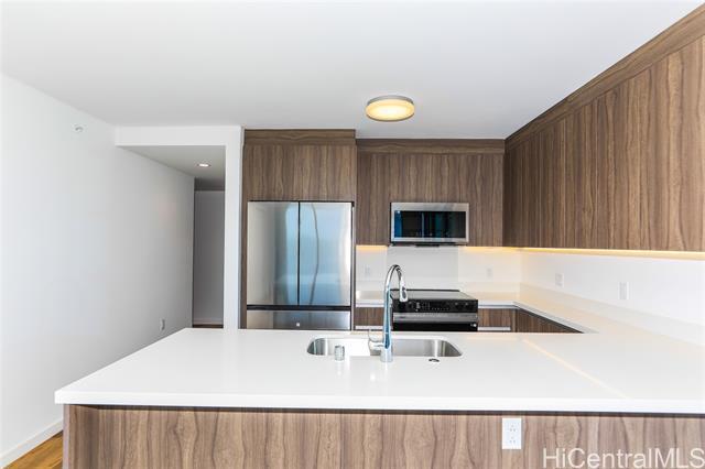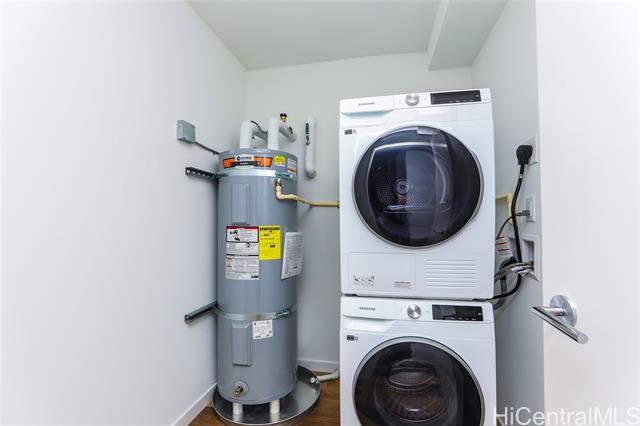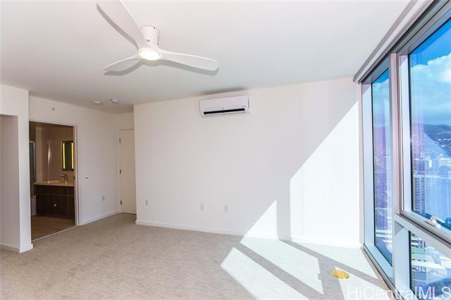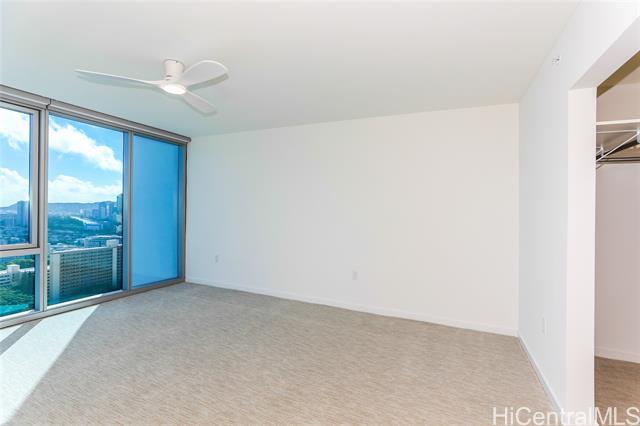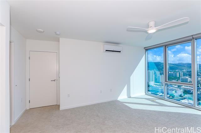 Largest 2-bedroom residence offering 1,074 square feet of interior living space, featuring two side-by-side covered parking stalls and a convenient shelving system in the entry closet. Split air-conditioning units serve the living room and both bedrooms for year-round comfort. Residents at The Park on Keeaumoku enjoy extensive amenities, including an infinity pool with cabanas and spa, movie theater, multimedia and community rooms, an outdoor lawn, a fully equipped fitness center with cardio and strength equipment, yoga room, and sauna. Additional conveniences include EV charging stations, bike storage, and 24/7 secured reception for added peace of mind. Rent includes hot water, water, and sewer.