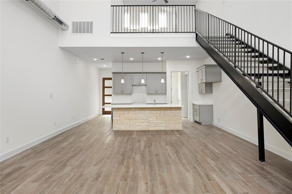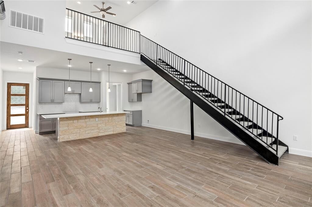 NEW TRIPLEX CONSTRUCTION Freshly painted 1BD/1.5 BTH TOWNHOME UNIT. 21 FT HUGE LIVING/ OPEN CEILING. OPEN KITCHEN FLOORPLAN TO LIV. 8FT GRANITE & STONE KITCHEN ISLAND, SS APPLIANCES INCLUDE- RANGE W/MICRO, REFRIGERATOR, & DISHWASHER. POWDER ROOM/UTILITY RM. MASTER BTH DOUBLE VANITY. HUGE MASTER WALK-IN CLOSET W/SHELVES. WALK-IN SHOWER. METAL INDUSTRIAL STAIRWAY. HUGE 18TH COVERED PATIO. OPEN FLOOR PLAN. Nestled in the quit subdivision.