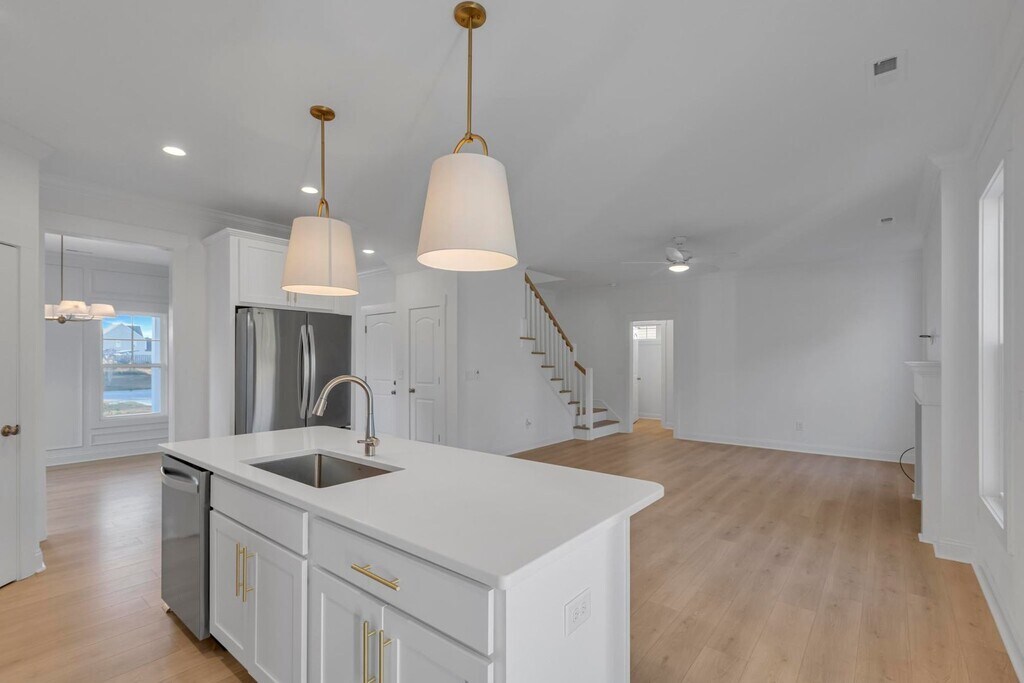 Welcome to your beautiful new home—where modern comfort meets thoughtful design! This stunning property features stylish stone countertops in both the kitchen and bathrooms, creating a sleek and durable space for cooking and everyday living. The kitchen is complete with a large pantry as well as a large island. There is also a formal dining room with beautiful fixtures. The main floor boasts low-maintenance luxury vinyl plank flooring with a fireplace, while plush carpeting in the bedrooms provides a warm and cozy retreat. Convenience is key with the laundry room located upstairs—complete with an extra sink that’s perfect for tackling messy chores and keeping your home spotless. Step outside to enjoy a spacious backyard ideal for entertaining, gardening, or simply relaxing. Take in the peaceful water view that can be enjoyed both to the side of the lot. The house sits at the end of the road so minimal traffic. With a two-car garage providing plenty of storage and parking, this home truly has it all. Don’t miss your chance to make this gorgeous property yours!