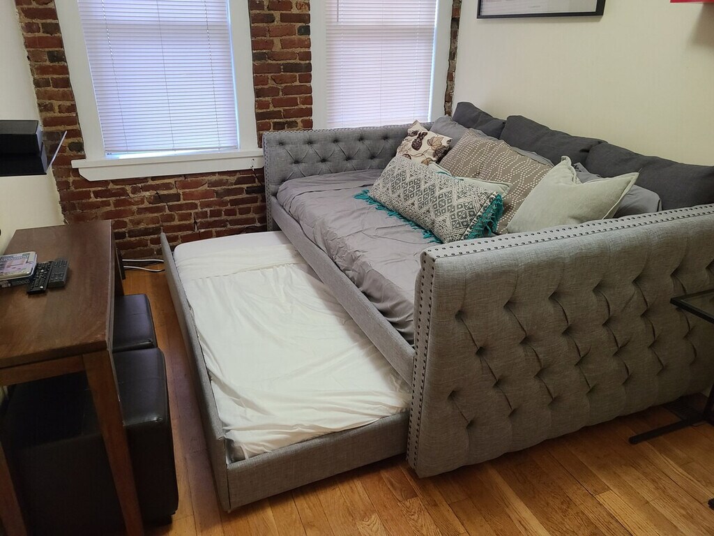 Feel at home in this condo with 5 beds, located in the Jeffries Point neighborhood in East Boston. You'll be just a 7-minute walk from the subway, a 6-minute walk from the waterfront parks, and a short 10-minute shuttle from the airport. Please note that this is a two-story apartment with a spiral staircase that can be a bit tricky for some guests. If stairs are an issue for you or anyone in your party, the kitchen, 2 bedrooms, bathroom, and a living space are upstairs. You'll have access to a full kitchen, a microwave, your own private exit to the street, and open living and dining rooms. Apartment features include a washer and dryer. Free street parking is available if you can find it (temporary 2-hour parking close by, 24-hour parking a few blocks away). The Airport Economy lot is also a short walk away. Up to 2 extra air/floor mattresses are available for larger groups upon request. Centrally located in East Boston and very close to the airport, this is a great, quieter location if you're visiting for a weekend. You're also just a short hop (1 subway stop) to downtown, where you can visit Faneuil Hall (shops & restaurants), Quincy Market, TD Garden, and the North End. A great place to stay if you're in town for a concert or game at TD Garden or Fenway, for graduations, to visit the North End, or even if you're just here to explore the city. There is even a train that will take you to Gillette Stadium for a Patriots game! Parking can be quite difficult, so it is recommended to not have a car, but there are options. Registration Number: STR-489771 [SI]