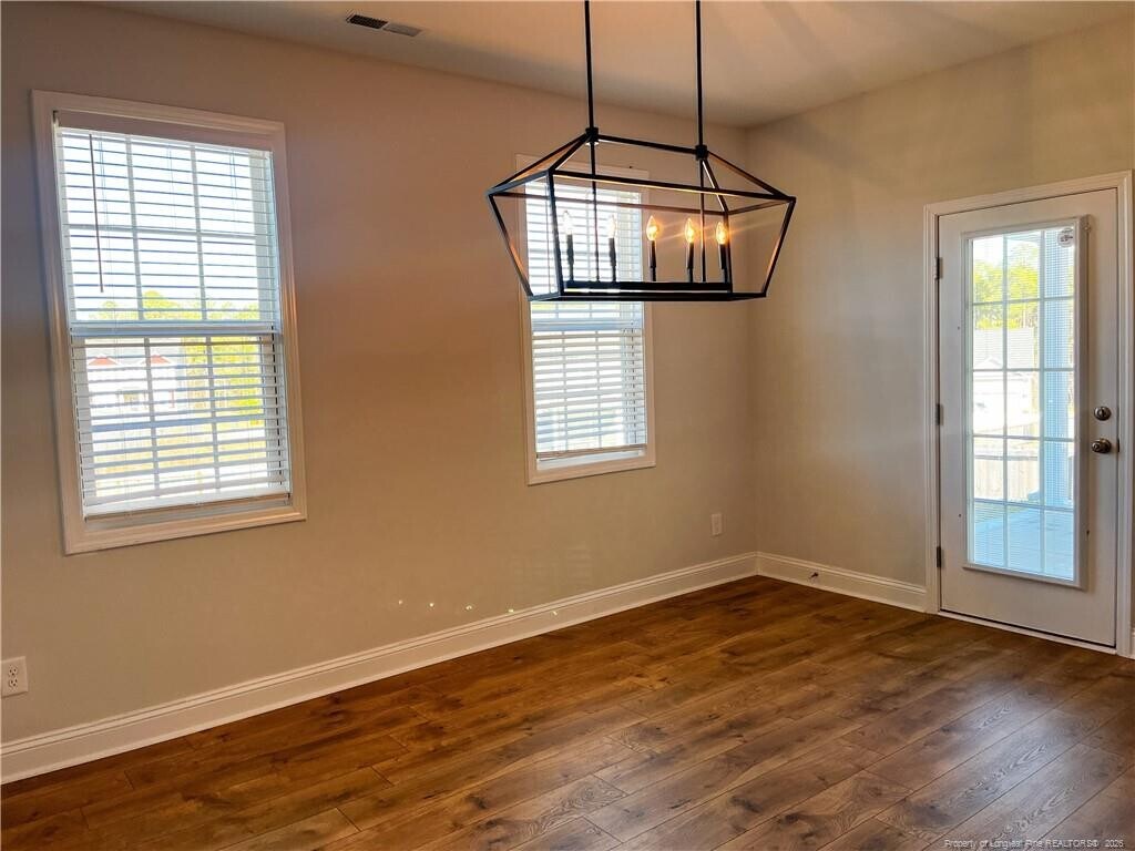 Stunning 4BR/2.5BA Home in Forest Oaks! This beautifully maintained home offers modern style and everyday comfort. The first floor features durable LVP flooring, a kitchen with granite countertops, tile backsplash, stainless steel appliances, and a large island with bar seating. A formal dining room, living room, office space, and half bath complete the main level. Upstairs, all four bedrooms are carpeted for comfort. The spacious primary suite boasts a walk-in closet connected to the laundry room. Step outside to a covered patio overlooking a fenced backyard. Pets upon approval. Conveniently located near Fort Bragg with easy access to shopping and dining. *Pictures were taken prior to current tenant move in!