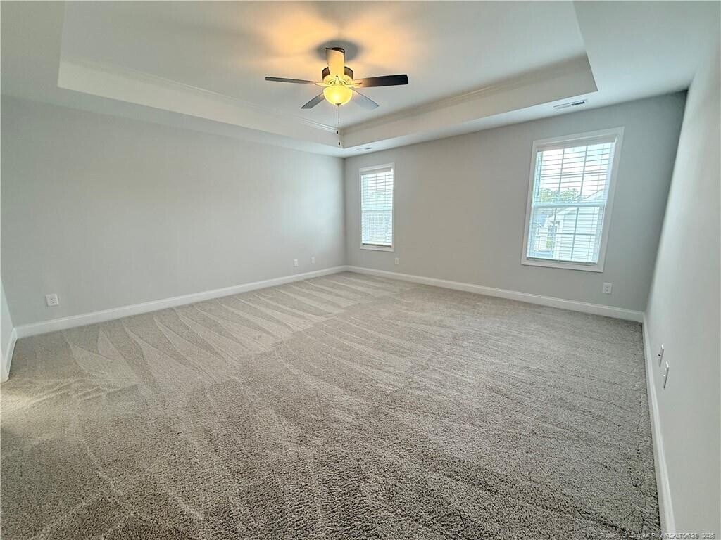 **AVAILABLE NOW** Stunning 4BR/2.5BA Home in Forest Oaks! This beautifully maintained home offers modern style and everyday comfort. The first floor features durable LVP flooring, a kitchen with granite countertops, tile backsplash, stainless steel appliances, and a large island with bar seating. A formal dining room, living room, office space, and half bath complete the main level. Upstairs, all four bedrooms are carpeted for comfort. The spacious primary suite boasts a walk-in closet connected to the laundry room. Step outside to a covered patio overlooking a fenced backyard. Pets upon approval. Conveniently located near Fort Bragg with easy access to shopping and dining.