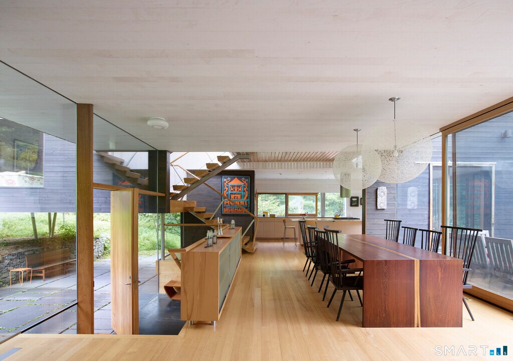 Call for Availability - The Depot House". Modern Masterpiece with in-ground Gunite pool overlooking a lush level lawn leading down to the Bantam River. 4 bedrooms (including a 1st floor Primary Suite) and 3 gorgeous bathrooms. Striking open Living/Dining/Kitchen with fireplace, beautiful hardwood and concrete floors, and expansive windows throughout the home frame the serene scenery beyond. A family room is annexed up a short flight of stairs. Multiple outside sitting areas including a terrace overlooking the river. The home is architecturally bold yet, provides a warmth and degree of whimsy. Located within a major estate area that is wonderful for walking, biking, exploring hiking trails or kayaking in the Bantam River and offers access to Lake Waramaug's Washington Town Beach. Nearby Washington Depot/New Preston and Bantam/Litchfield and Morris. First opportunity to experience this award-winning architects' stunning home- personally designed and built for their own use. A rare and unparalleled offering. 1- car garage with EV Charger. Available for $30,000 per month: June and/or July and/or August 2026. MLS# 24168506
