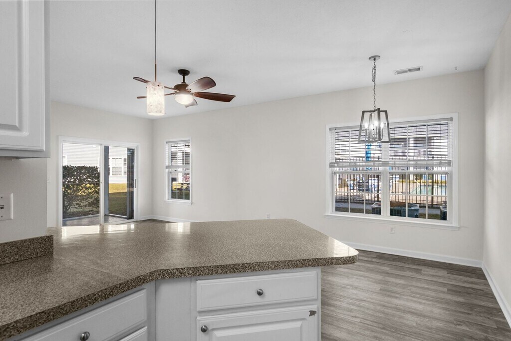 Welcome home to your new 3-bedroom, 2-bath condo in the heart of Carolina Forest! Step into comfort and convenience at 155 Westhaven Dr, Unit 14D, nestled in the gated community of Carolina Willows. This first-floor end-unit offers generous space and modern upgrades — perfect for long-term living. Key Features: 3 spacious bedrooms and 2 full bathrooms, ideal for families, roommates, or a home office setup. 1,260 sq ft of living space. Open floor plan with abundant natural light and upgraded luxury vinyl plank (LVP) flooring throughout. Modern kitchen with island, solid surface counters and plenty of storage — perfect for cooking and entertaining. Split bedroom layout for privacy, and a comfortable living/dining area that flows seamlessly. Screened or covered porch/patio space where you can relax outdoors without leaving home. Parking access right outside (two spaces), no stairs required thanks to first-floor living. Community amenities include a gated entrance, clubhouse, recreation area and outdoor pool. Fantastic location: minutes to shopping, dining, golf courses, and the beach. Top-tier school zones add to the appeal. Why it’s a great long-term rental: Easy maintenance living in a low-rise building with desirable community features. Strong neighborhood growth and demand — ideal for staying awhile or returning each year. Upgrades in recent years (including HVAC and water heater) bring peace of mind.